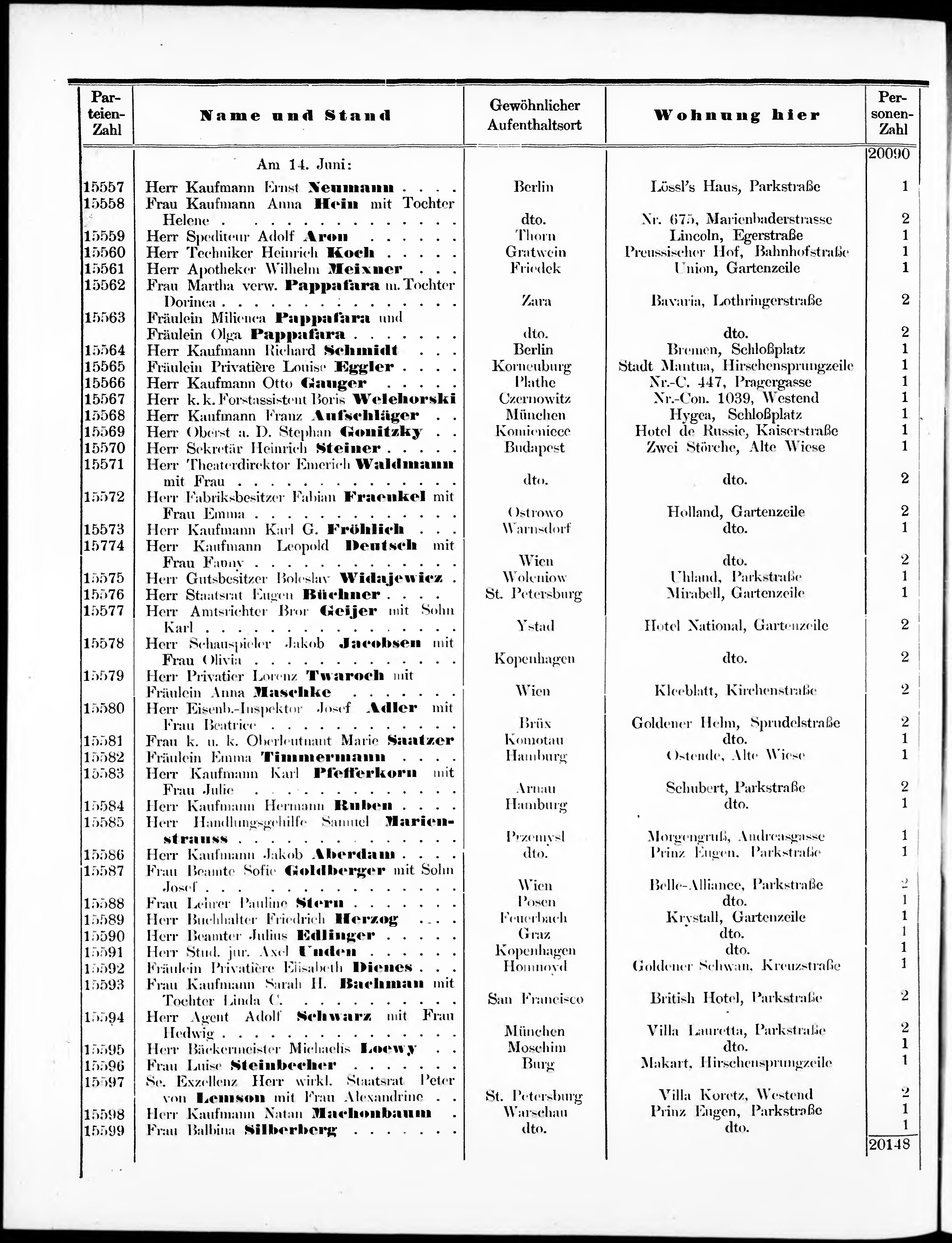 Liste der im Jahre ... angekommenen und abgereisten Kur- und Badegäste in Karlsb...