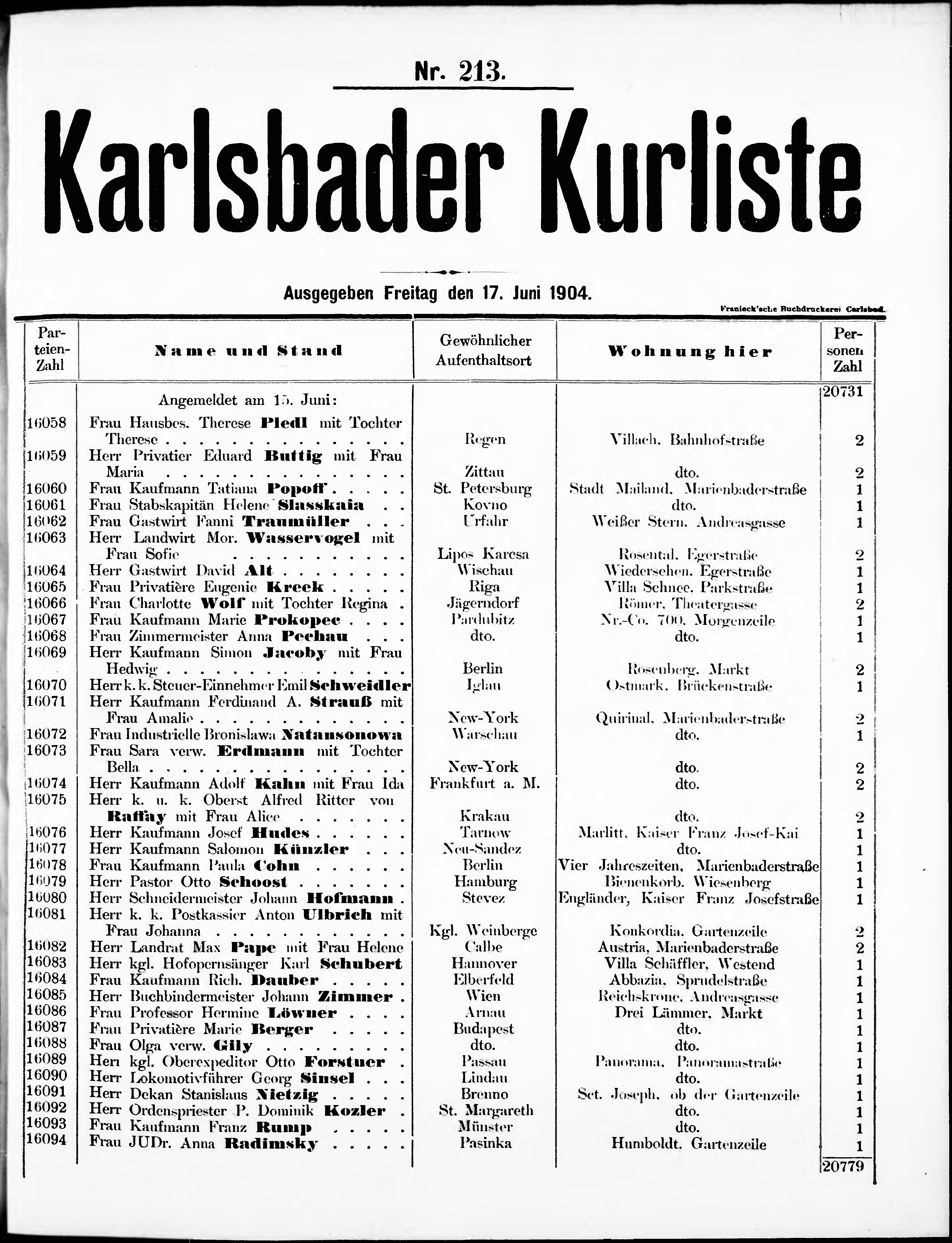 Liste der im Jahre ... angekommenen und abgereisten Kur- und Badegäste in Karlsb...