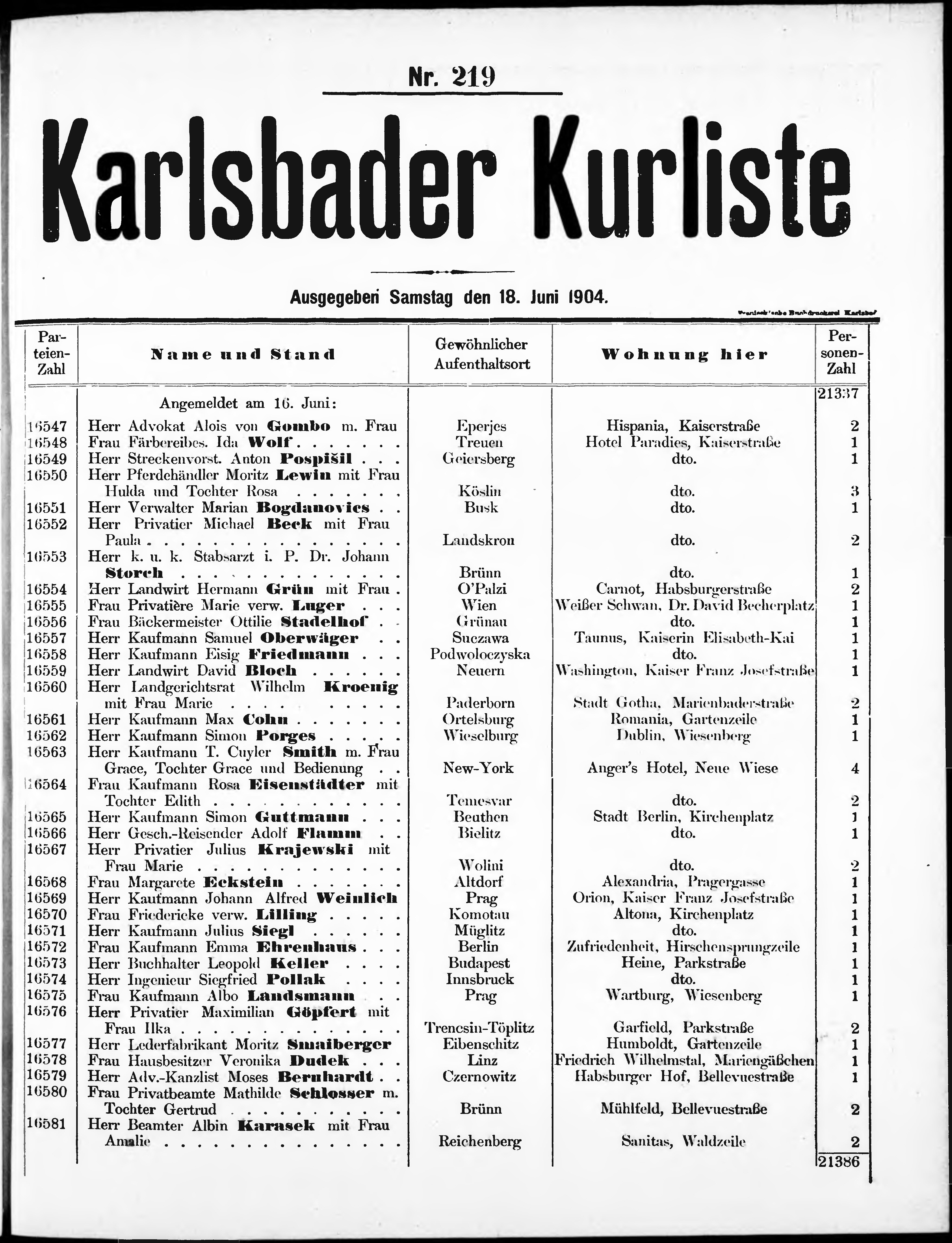 Liste der im Jahre ... angekommenen und abgereisten Kur- und Badegäste in Karlsb...