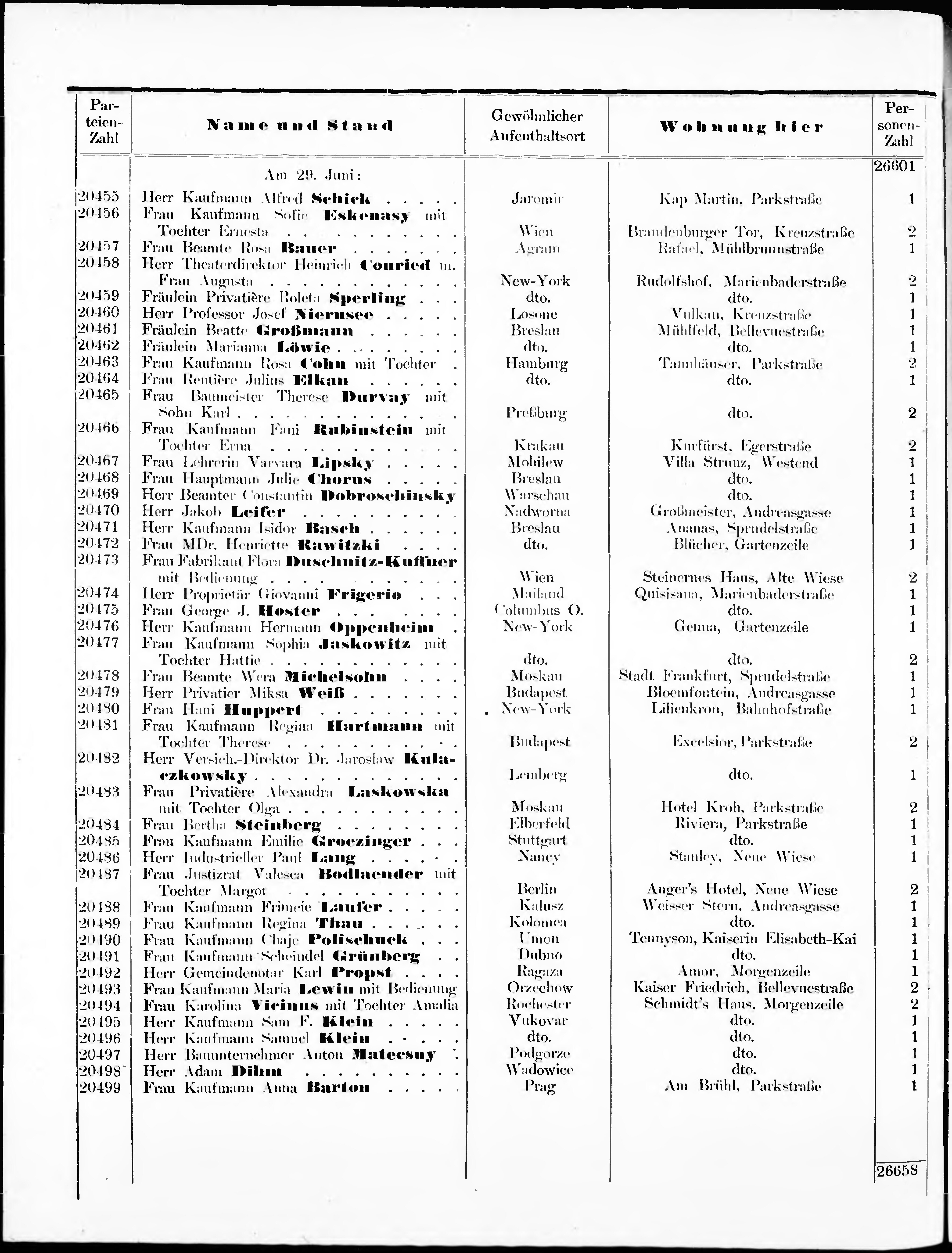 Liste der angekommenen und abgereisten P. T. Curgäste in Carlsbad im Jahre