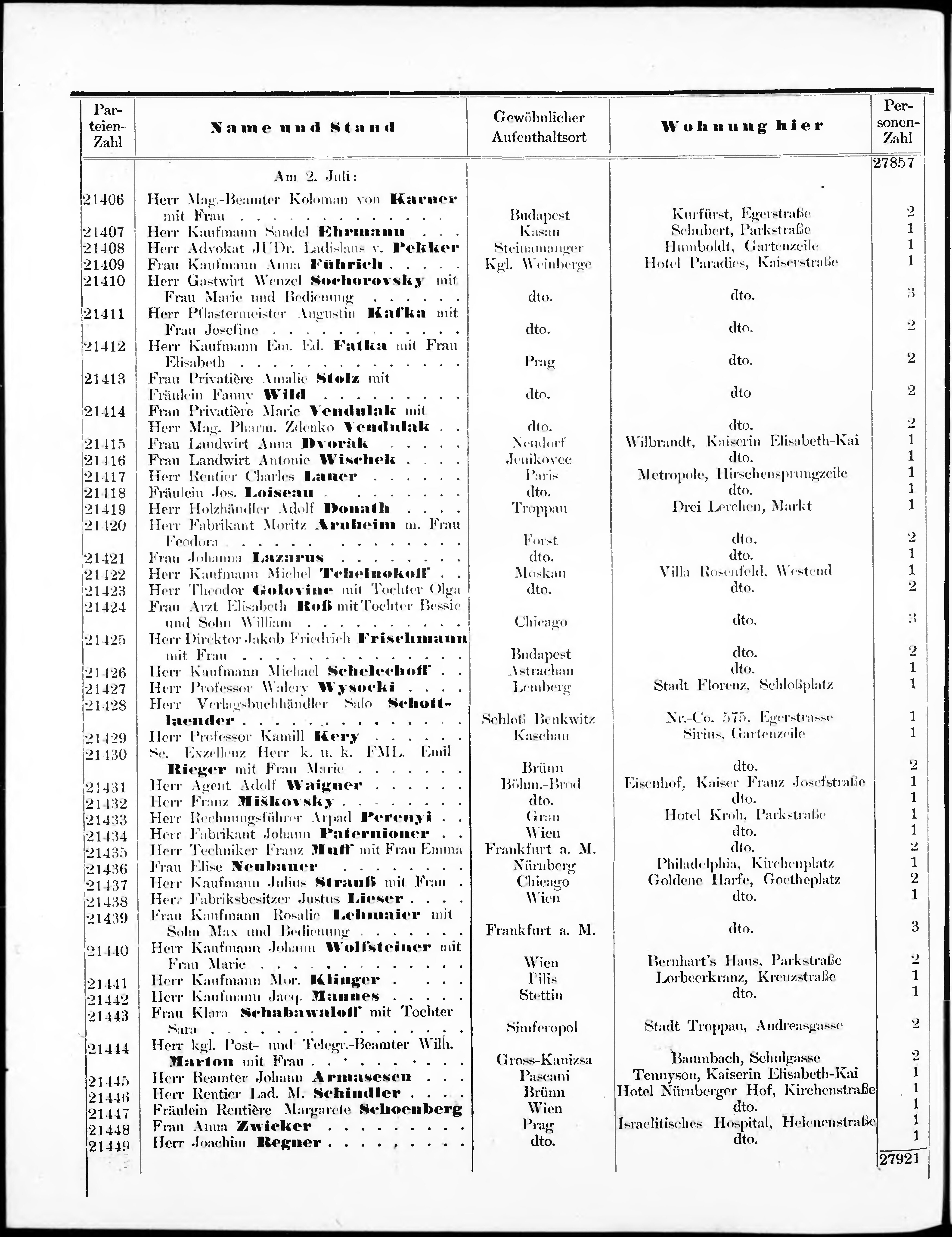 Liste der im Jahre ... angekommenen und abgereisten Kur- und Badegäste in Karlsb...