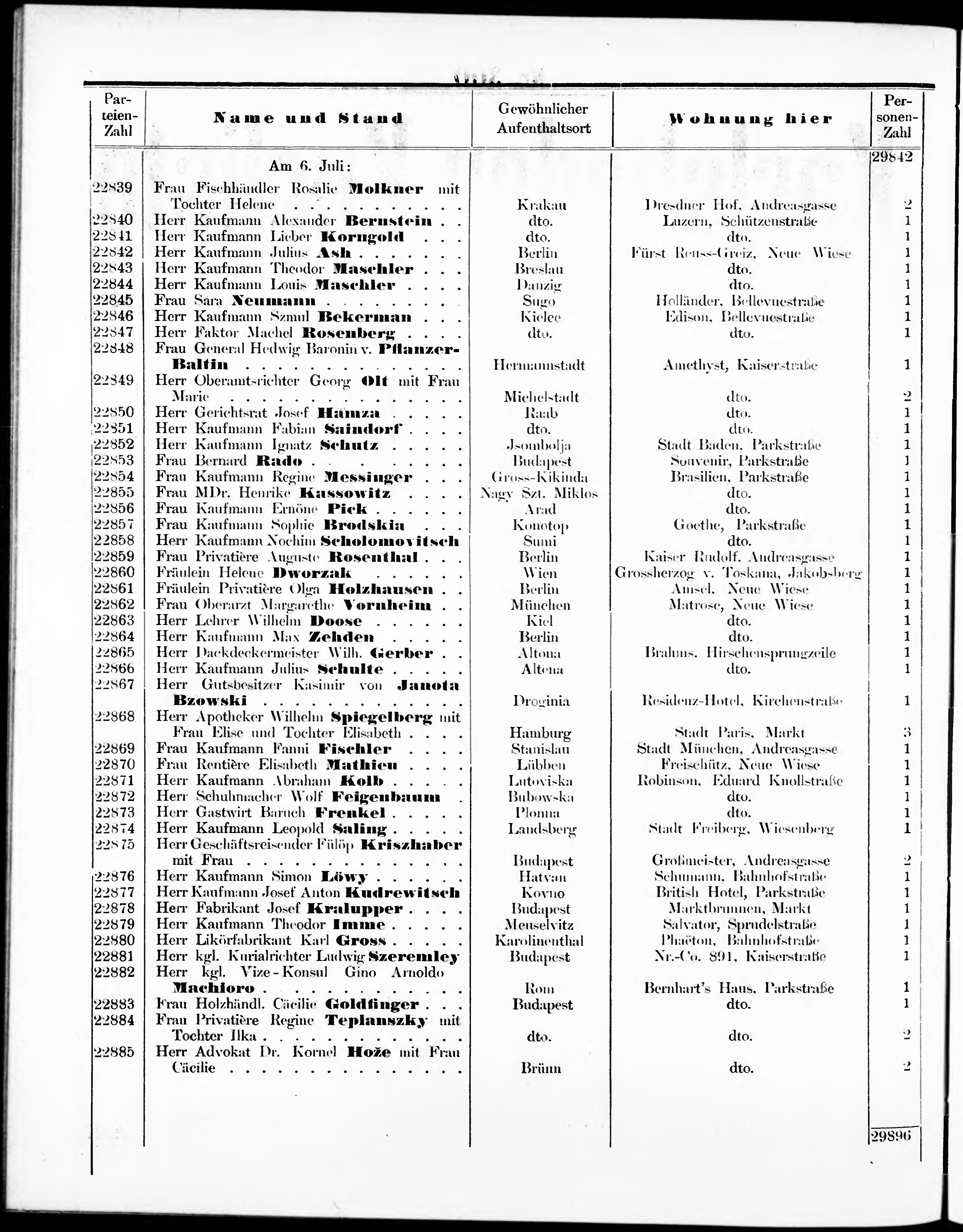 Liste der im Jahre ... angekommenen und abgereisten Kur- und Badegäste in Karlsb...