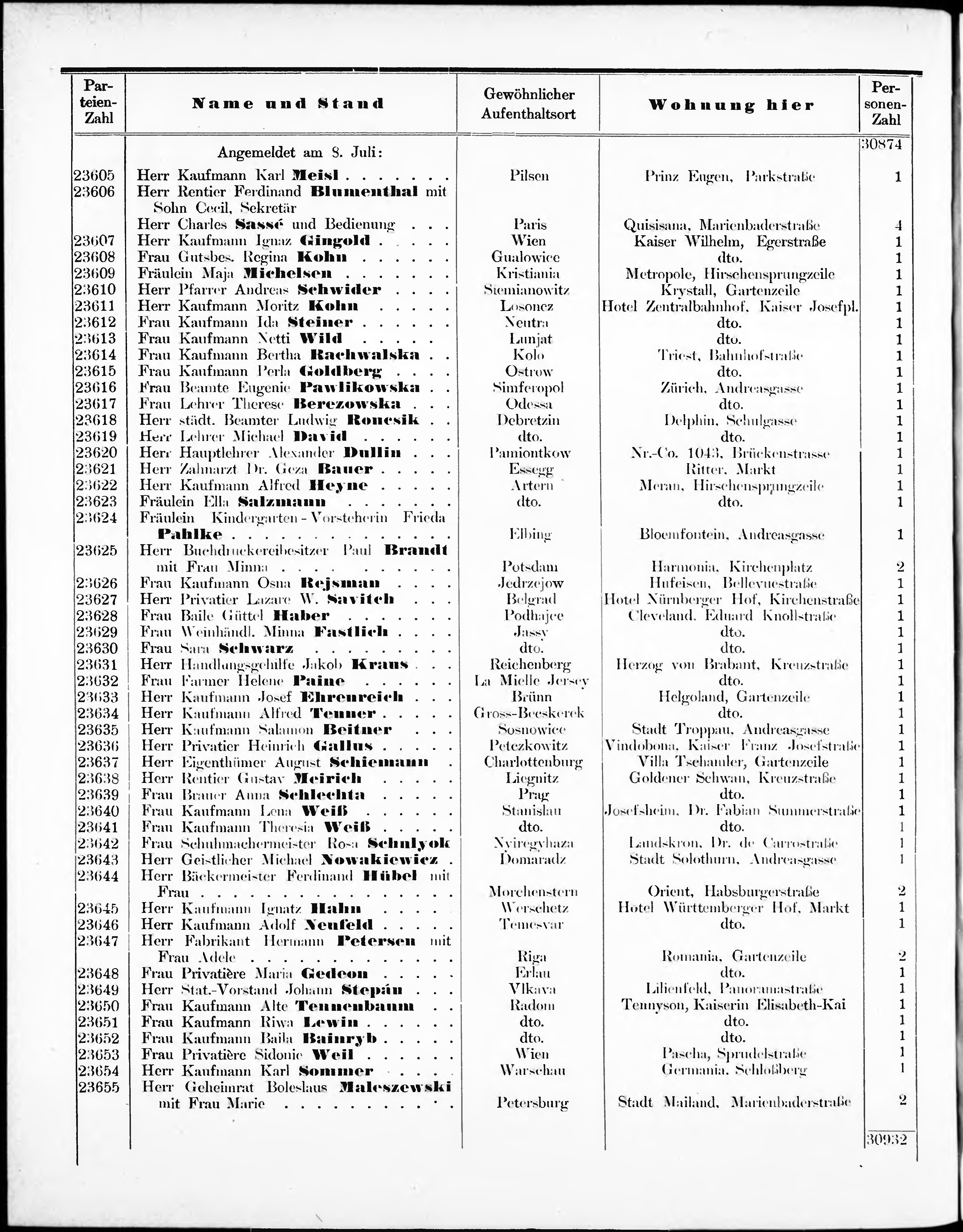 Liste der im Jahre ... angekommenen und abgereisten Kur- und Badegäste in Karlsb...
