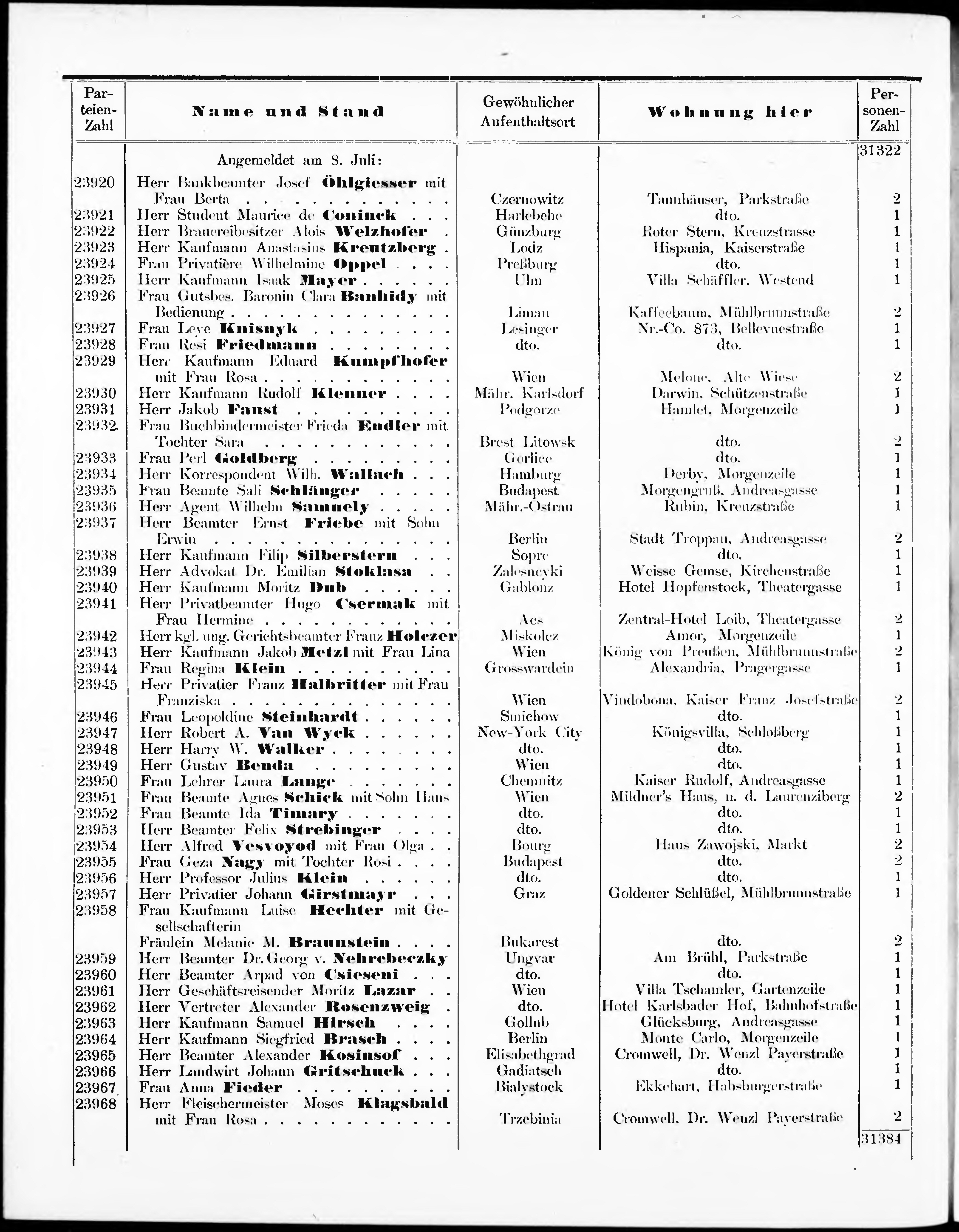 Liste der im Jahre ... angekommenen und abgereisten Kur- und Badegäste in Karlsb...