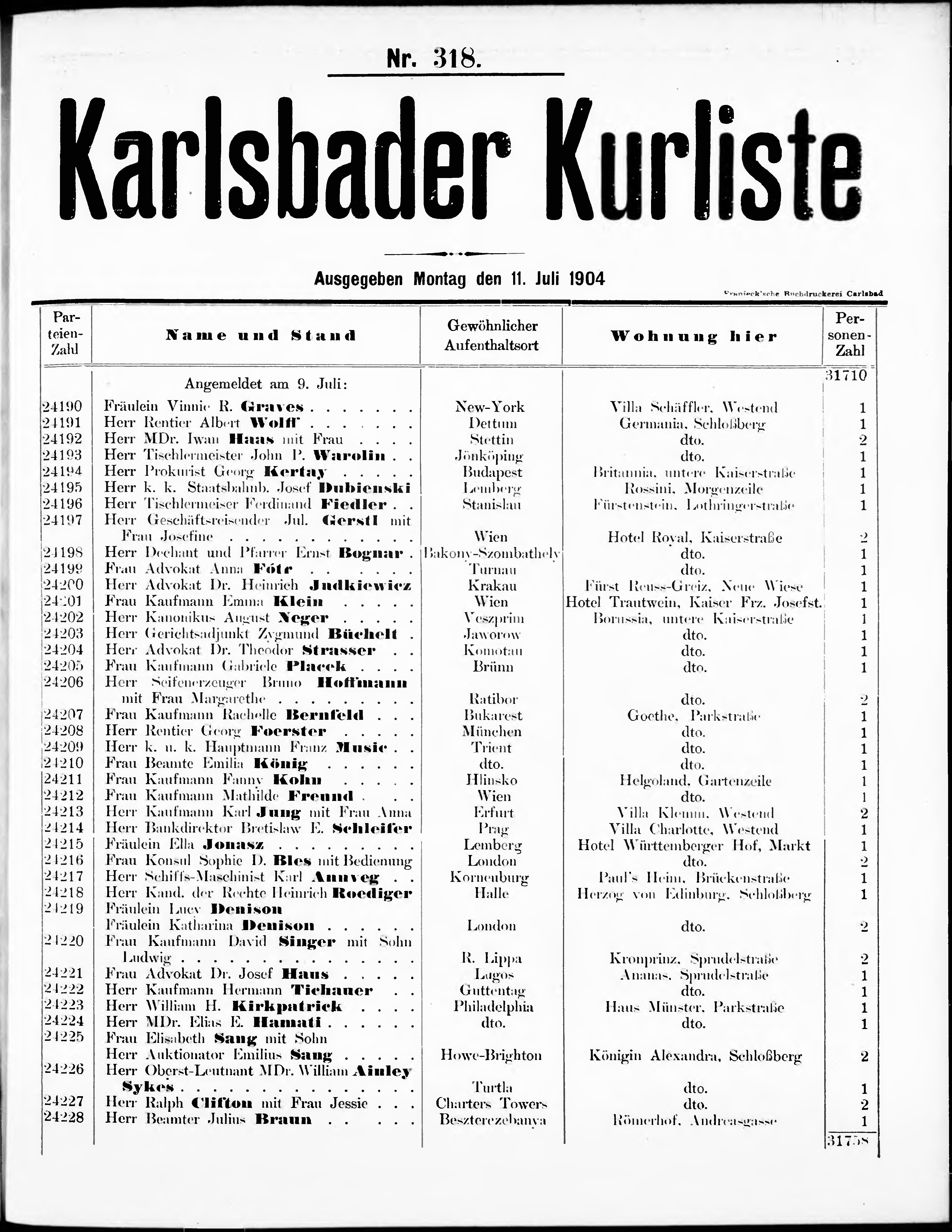 Liste der im Jahre ... angekommenen und abgereisten Kur- und Badegäste in Karlsb...