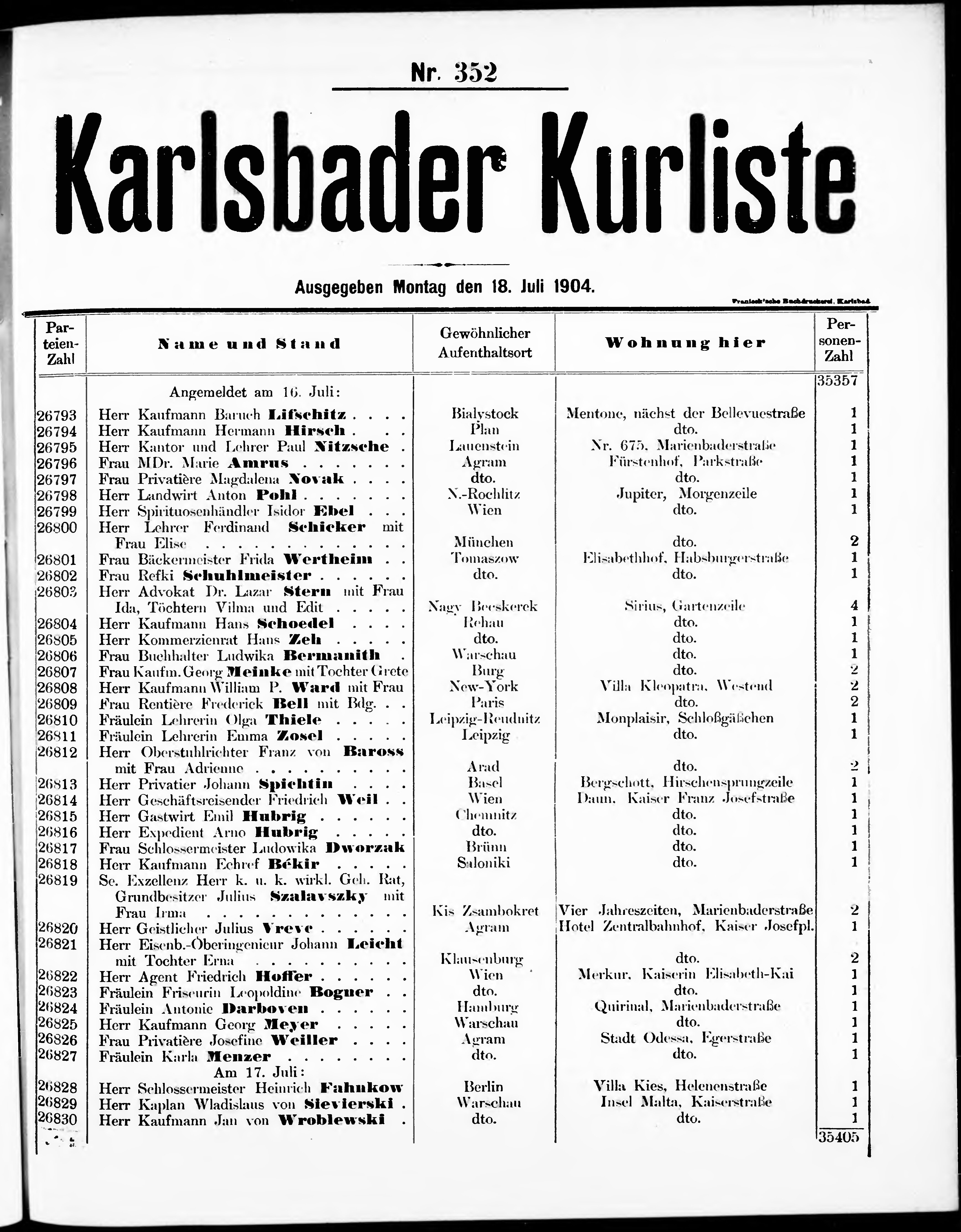 * Datum vydání výtisku: 18.7.1904 Číslo výtisku: 352