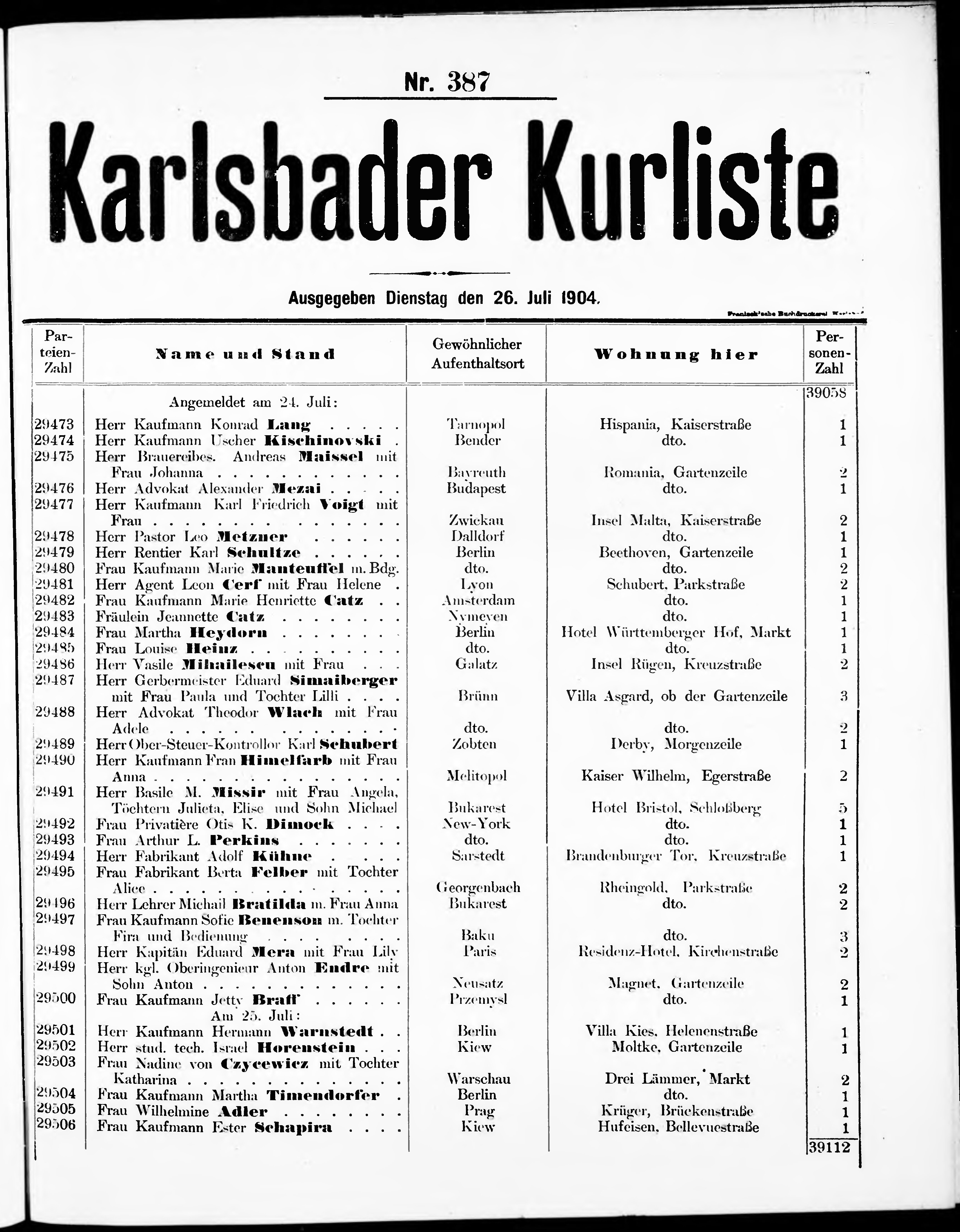 Liste der im Jahre ... angekommenen und abgereisten Kur- und Badegäste in Karlsb...