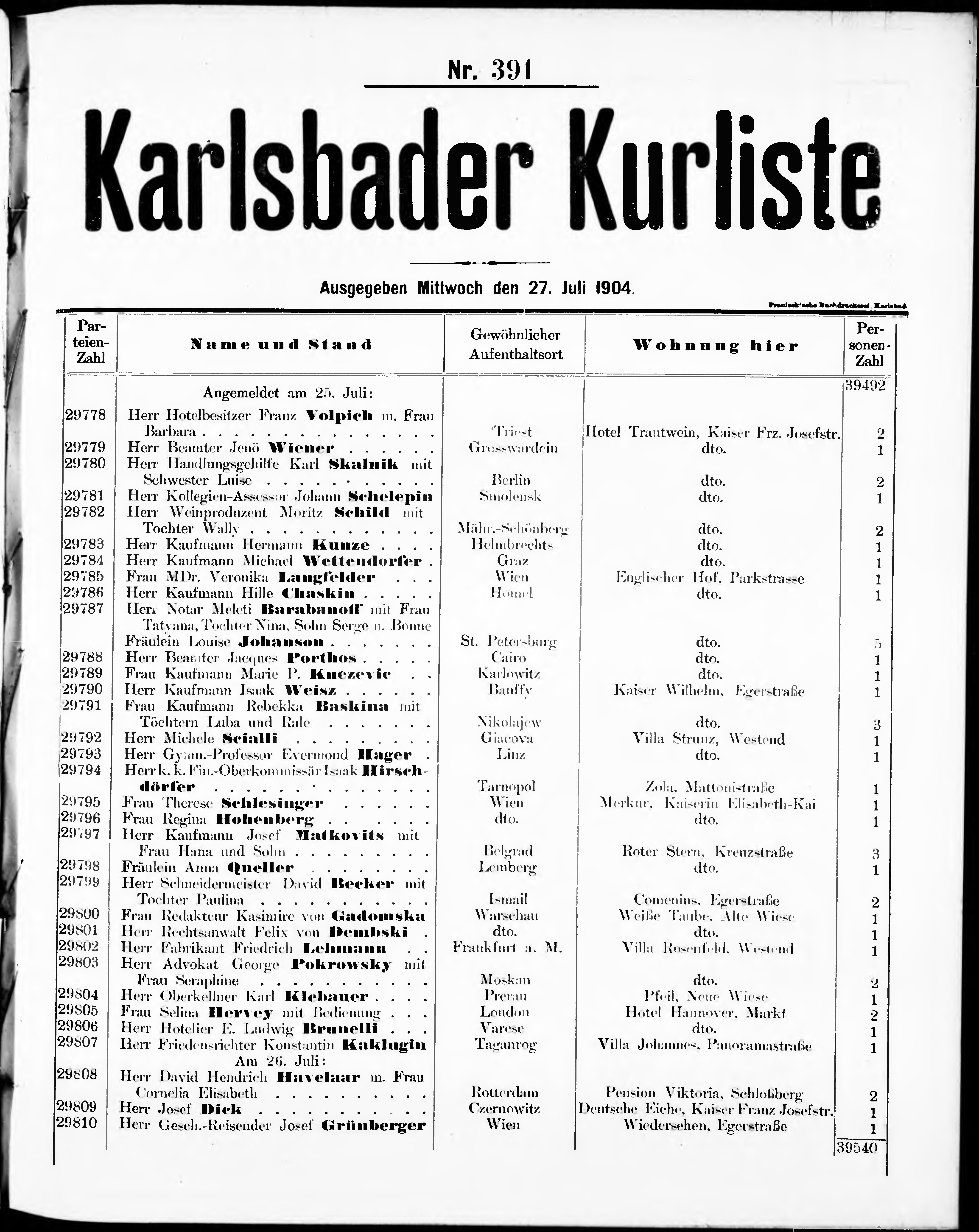 Liste der im Jahre ... angekommenen und abgereisten Kur- und Badegäste in Karlsb...