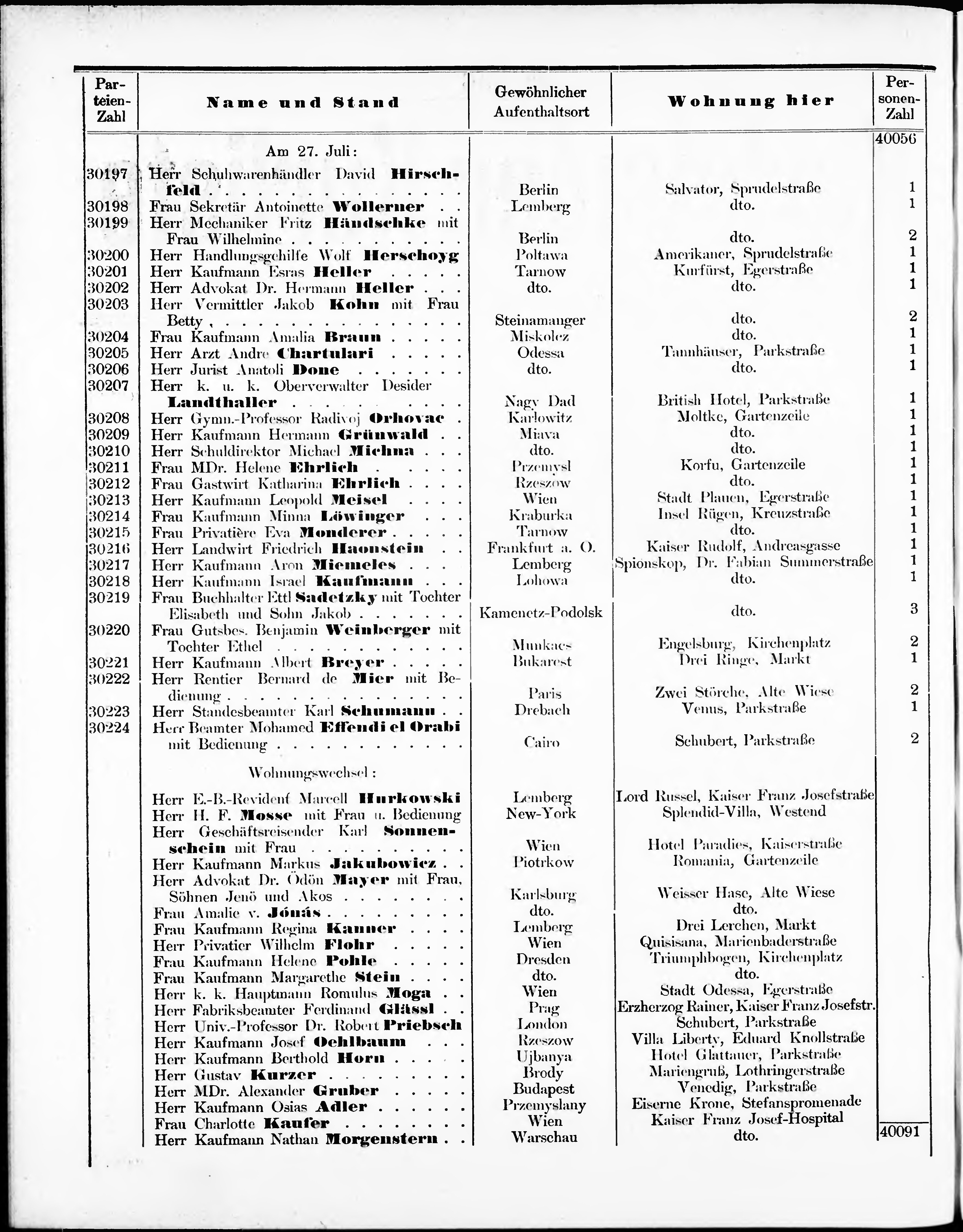Liste der im Jahre ... angekommenen und abgereisten Kur- und Badegäste in Karlsb...
