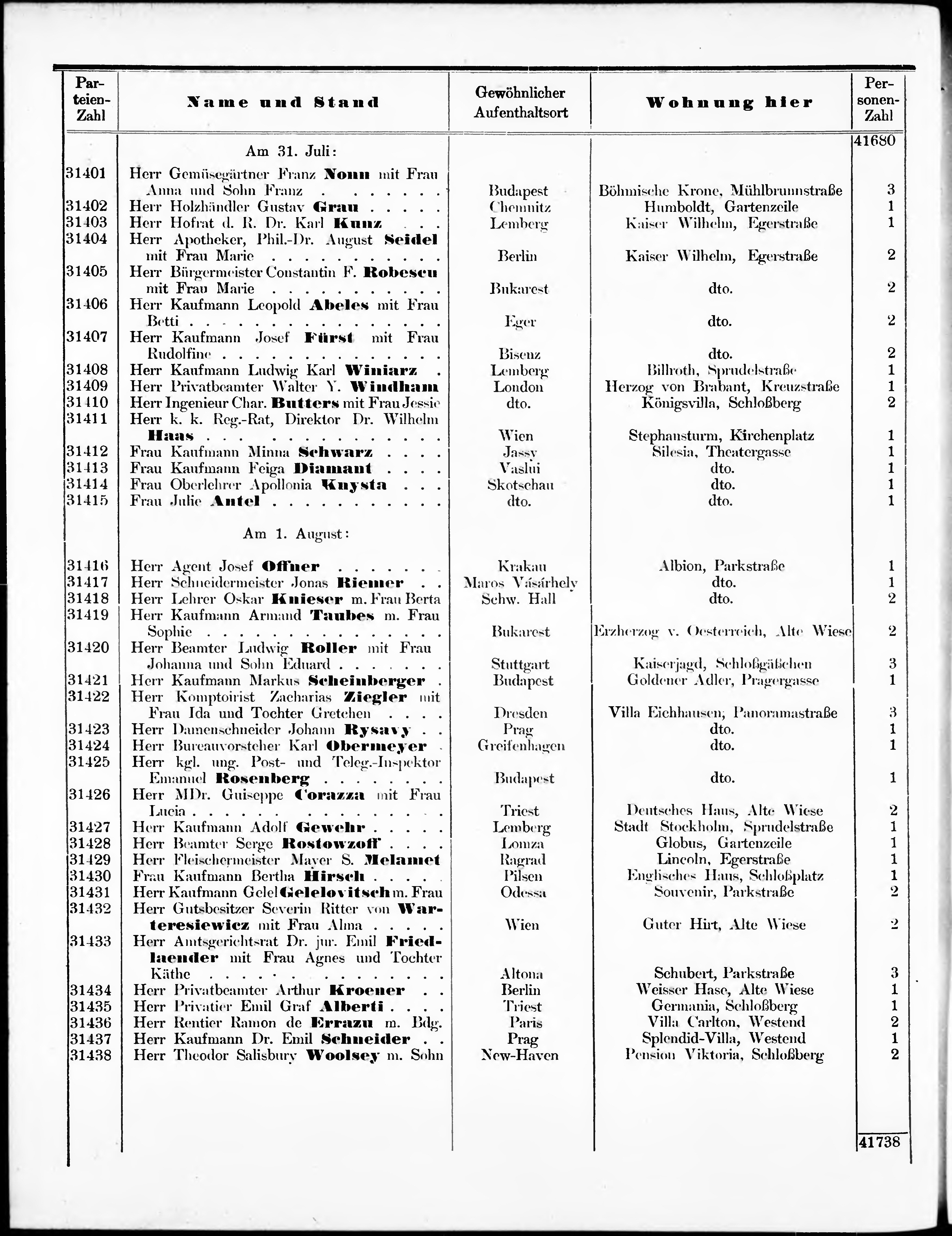 Liste der im Jahre ... angekommenen und abgereisten Kur- und Badegäste in Karlsb...