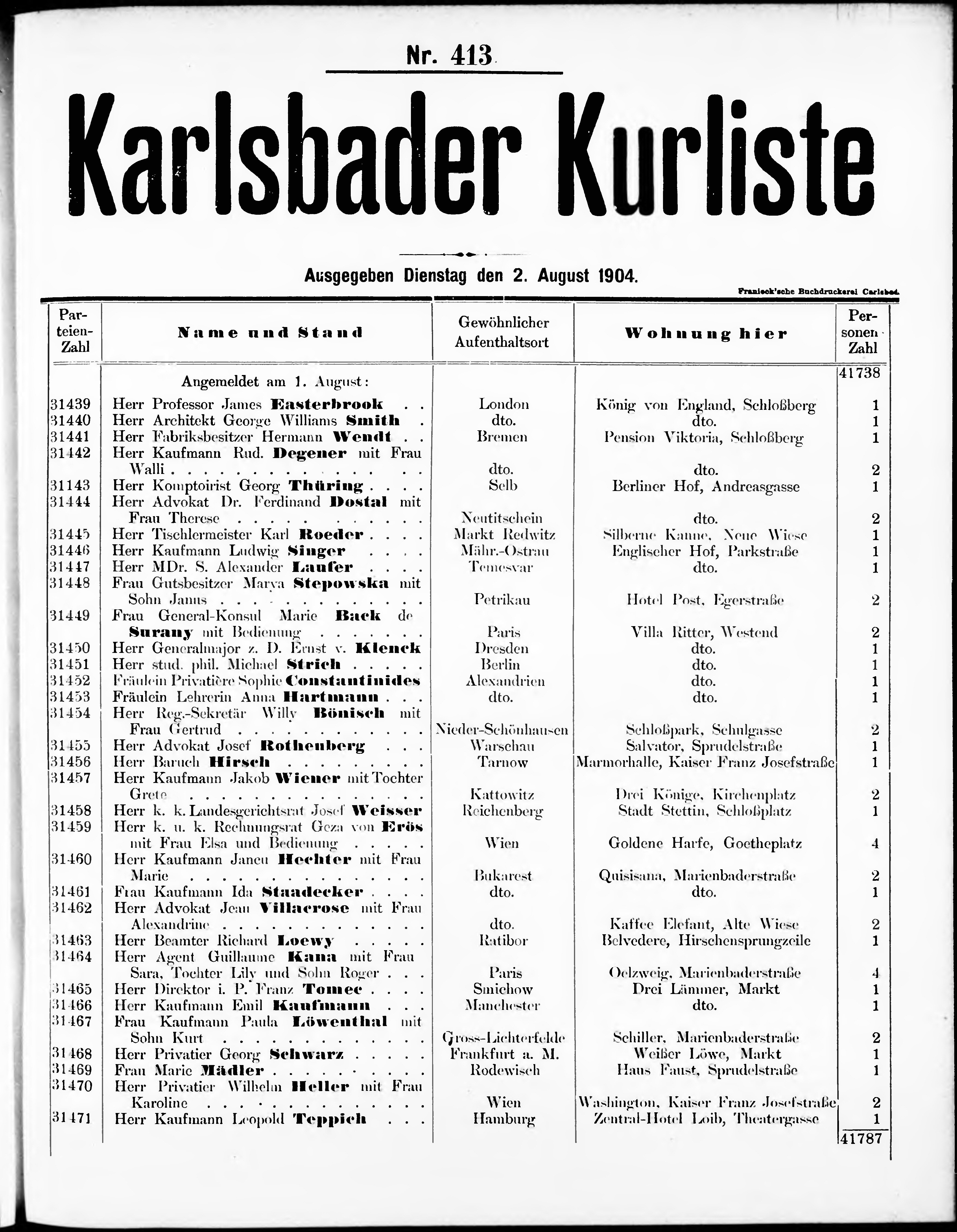 Liste der im Jahre ... angekommenen und abgereisten Kur- und Badegäste in Karlsb...