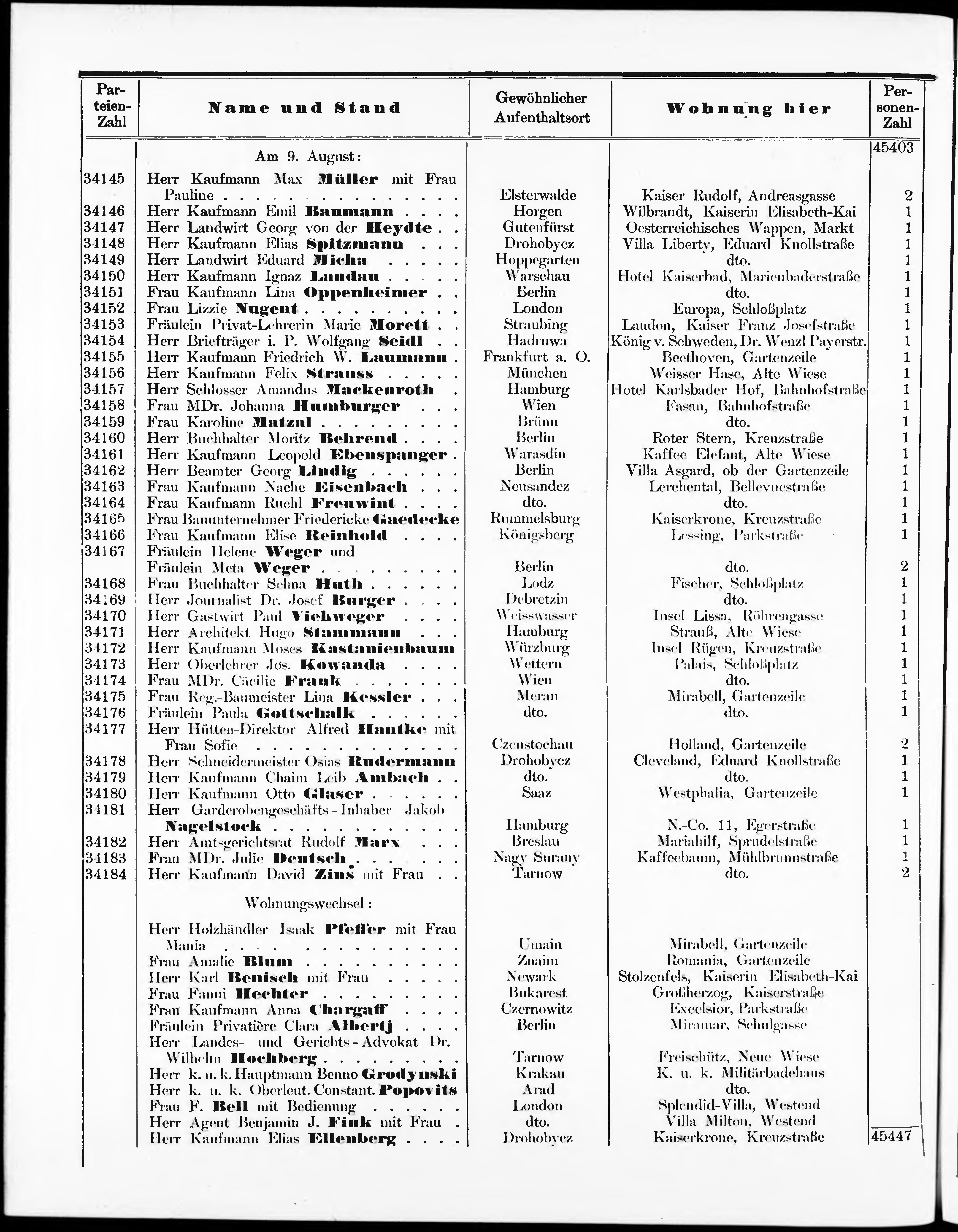 Liste der im Jahre ... angekommenen und abgereisten Kur- und Badegäste in Karlsb...