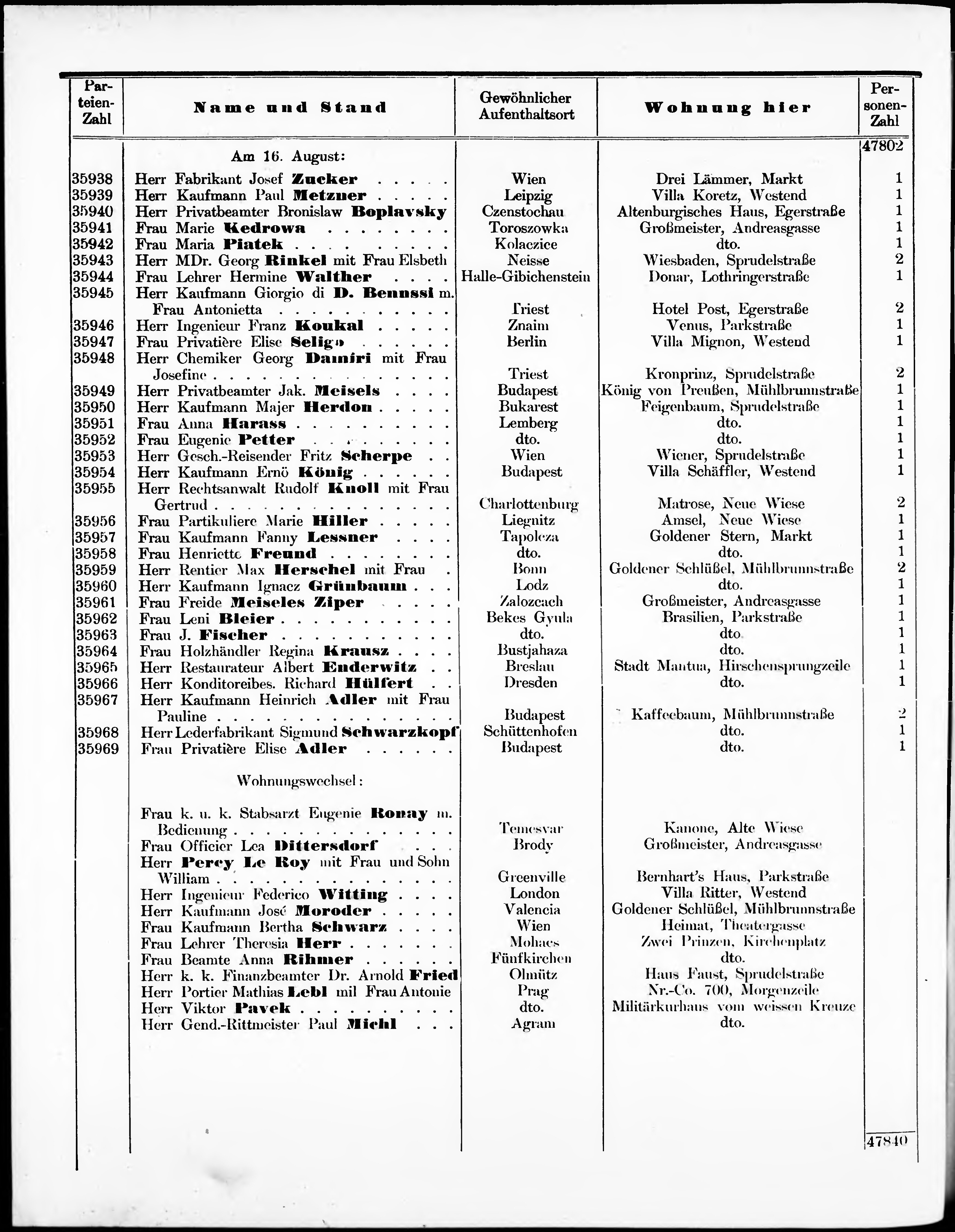 Liste der im Jahre ... angekommenen und abgereisten Kur- und Badegäste in Karlsb...