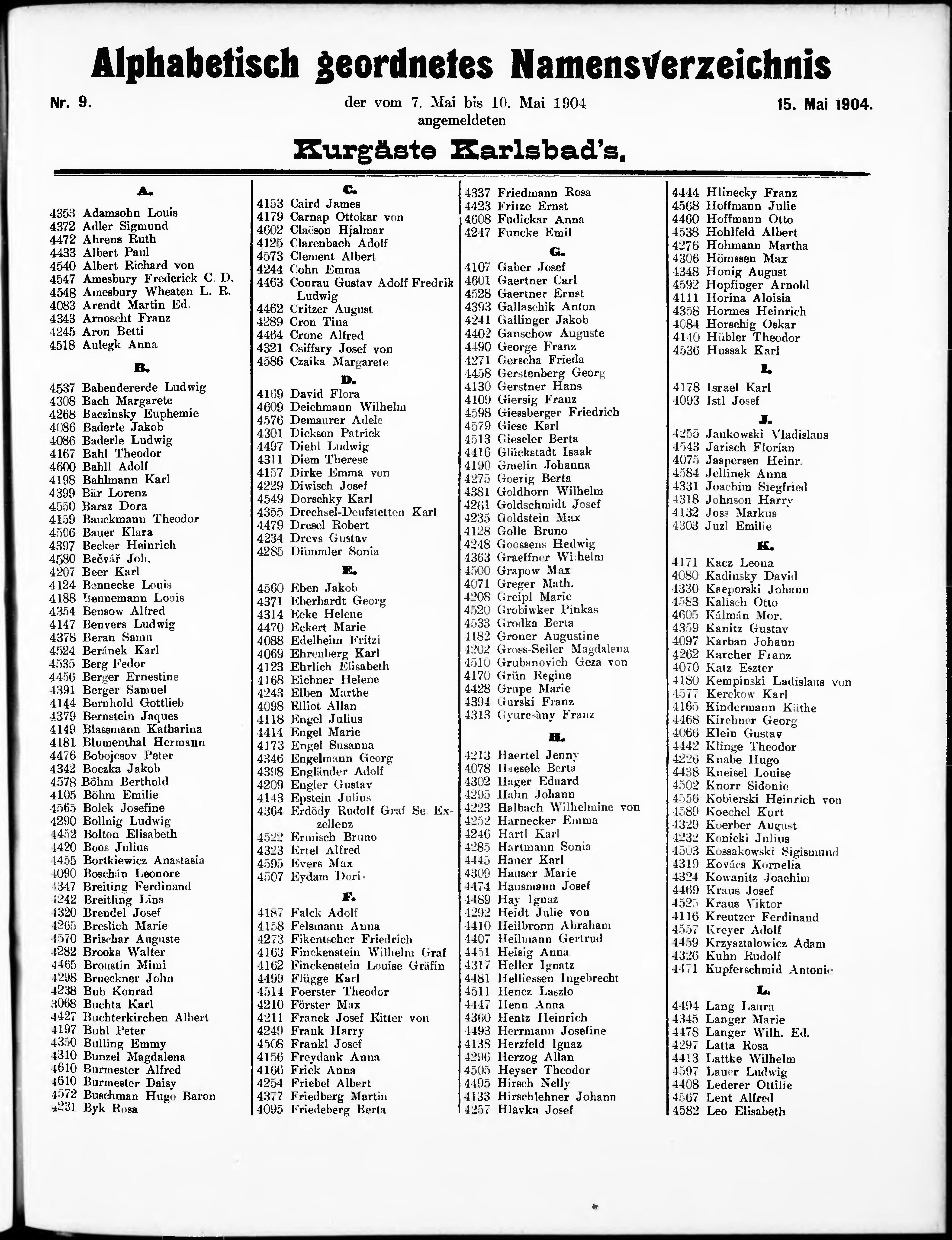 Liste der im Jahre ... angekommenen und abgereisten Kur- und Badegäste in Karlsb...