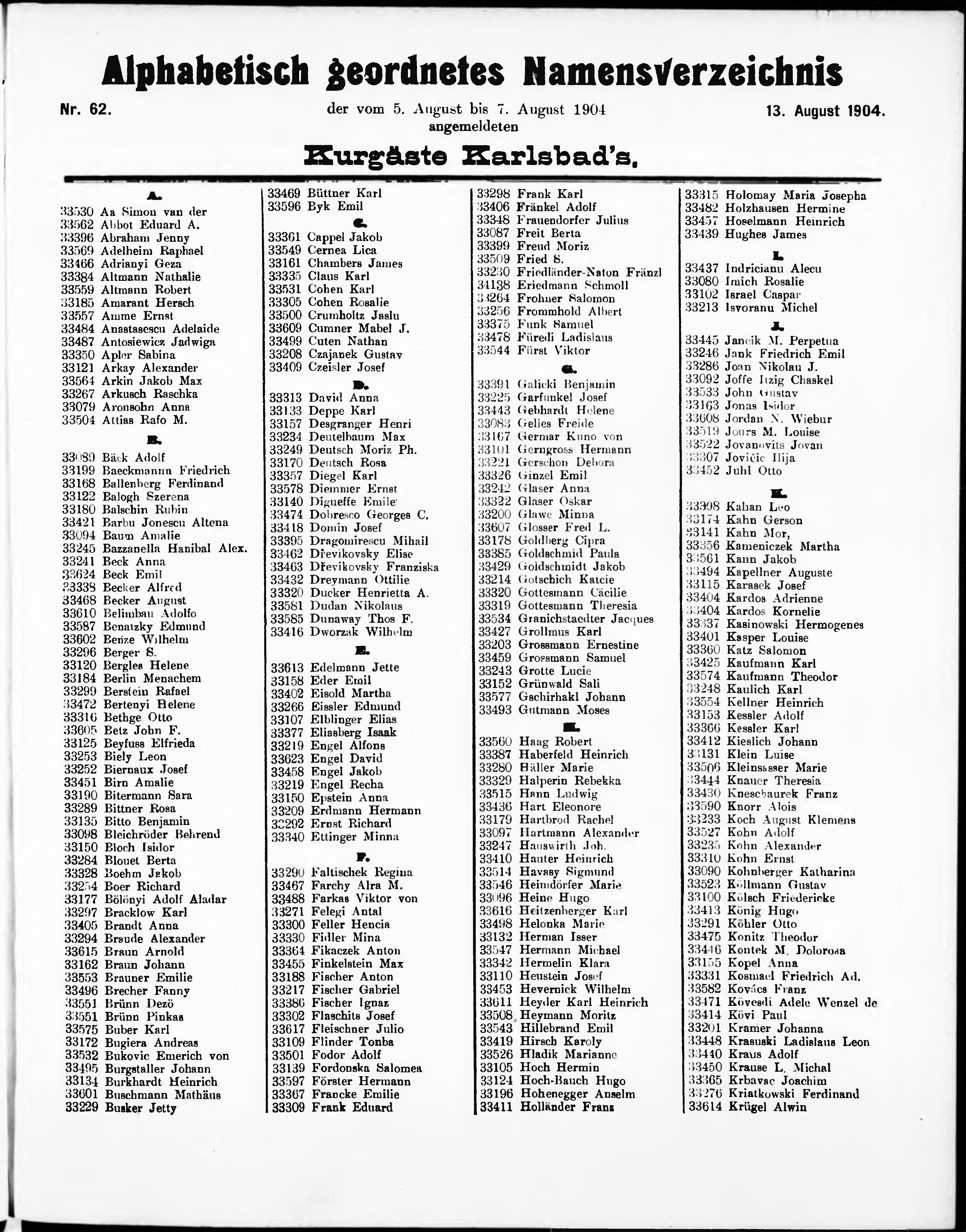 Liste der im Jahre ... angekommenen und abgereisten Kur- und Badegäste in Karlsb...