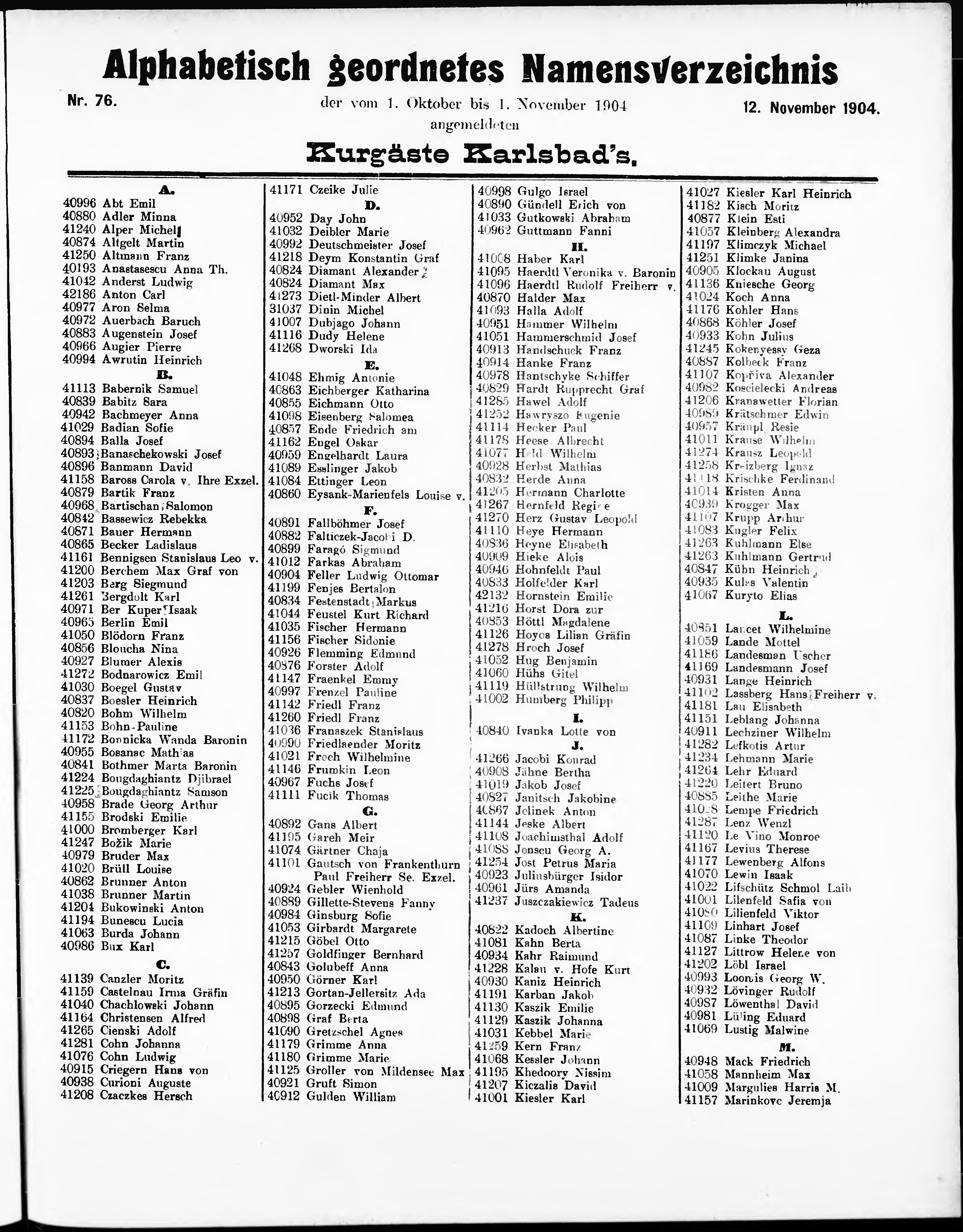 * Datum vydání výtisku: 12.11.1904 Číslo výtisku: 76