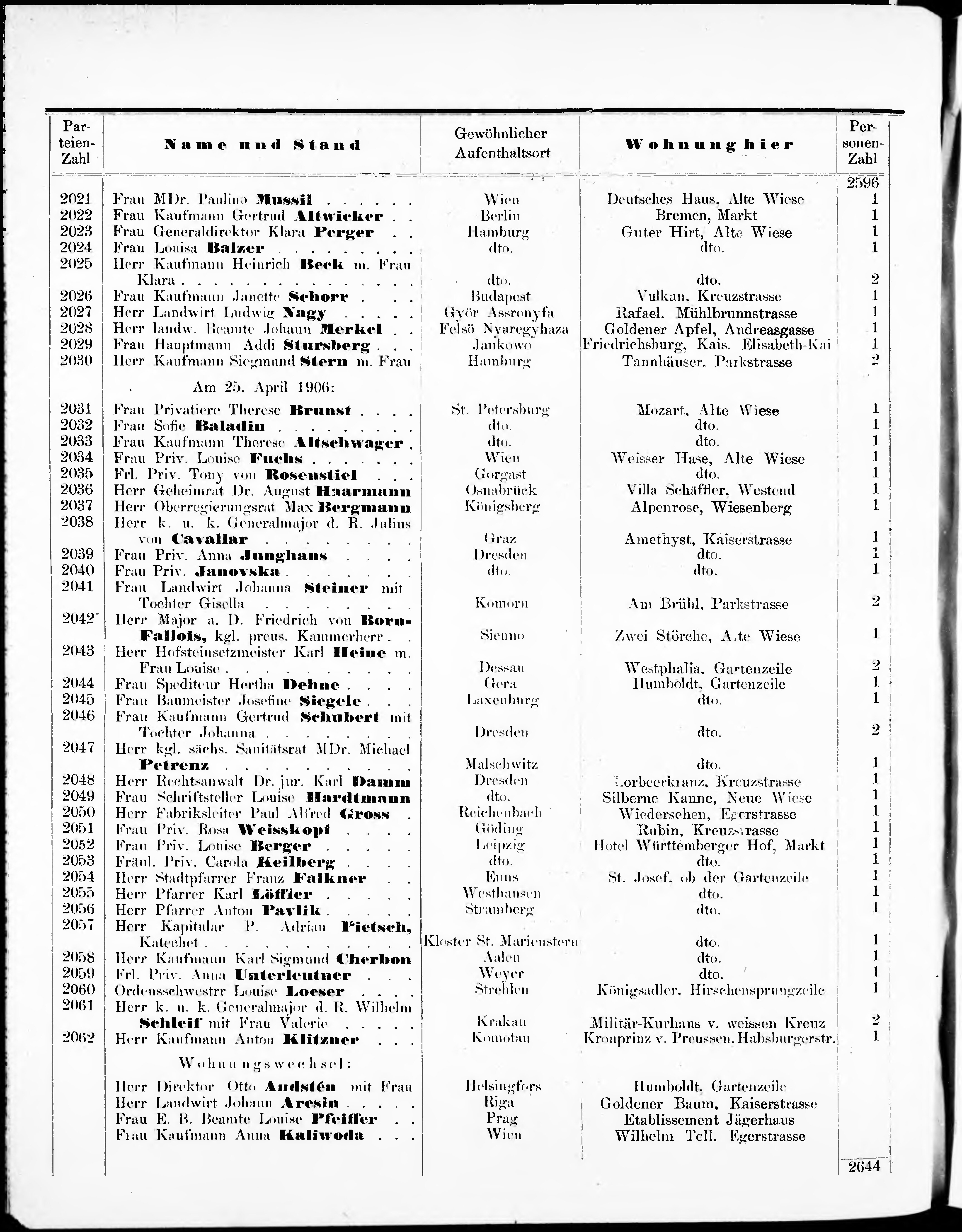Liste der im Jahre ... angekommenen und abgereisten Kur- und Badegäste in Karlsb...
