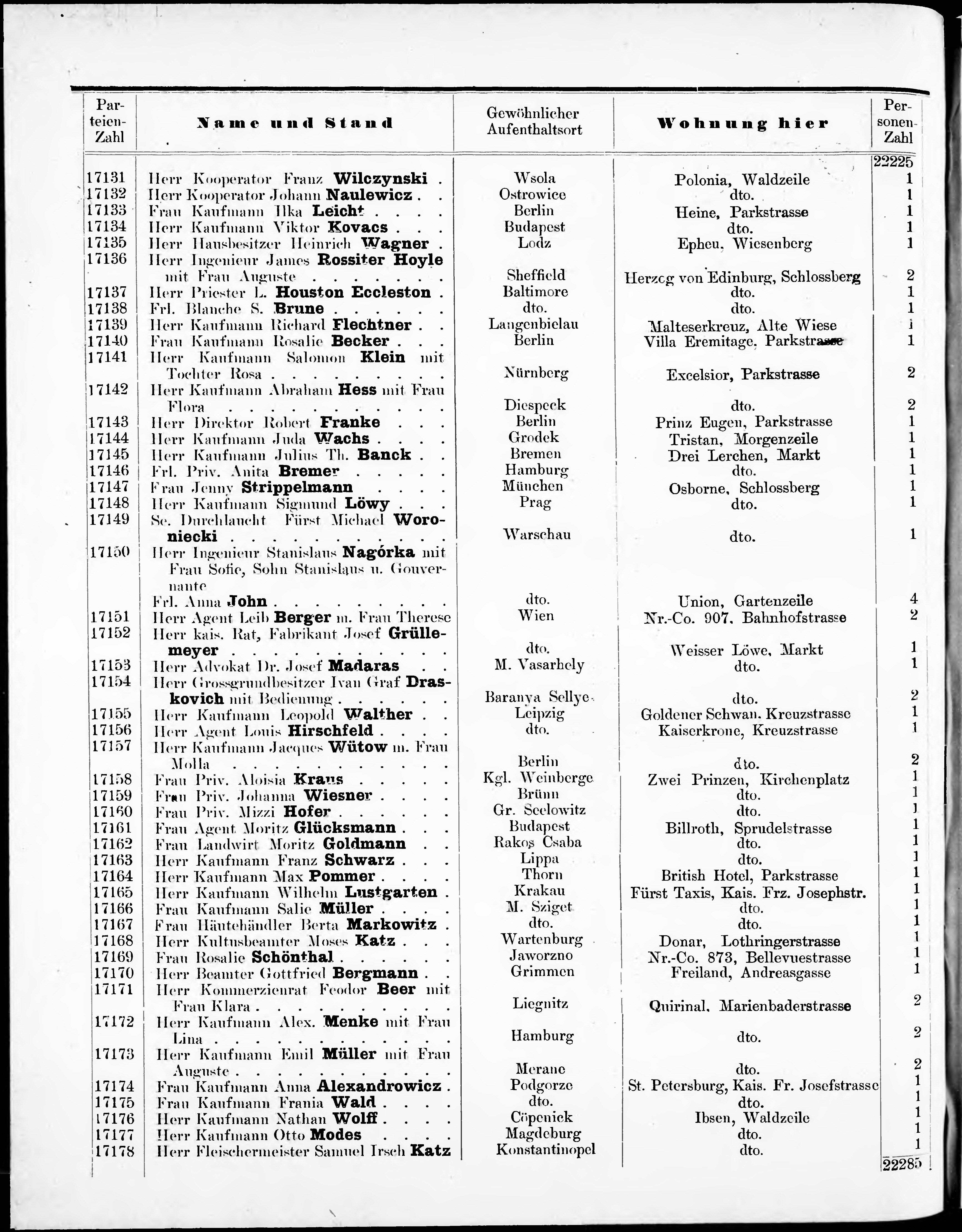 Liste der im Jahre ... angekommenen und abgereisten Kur- und Badegäste in Karlsb...