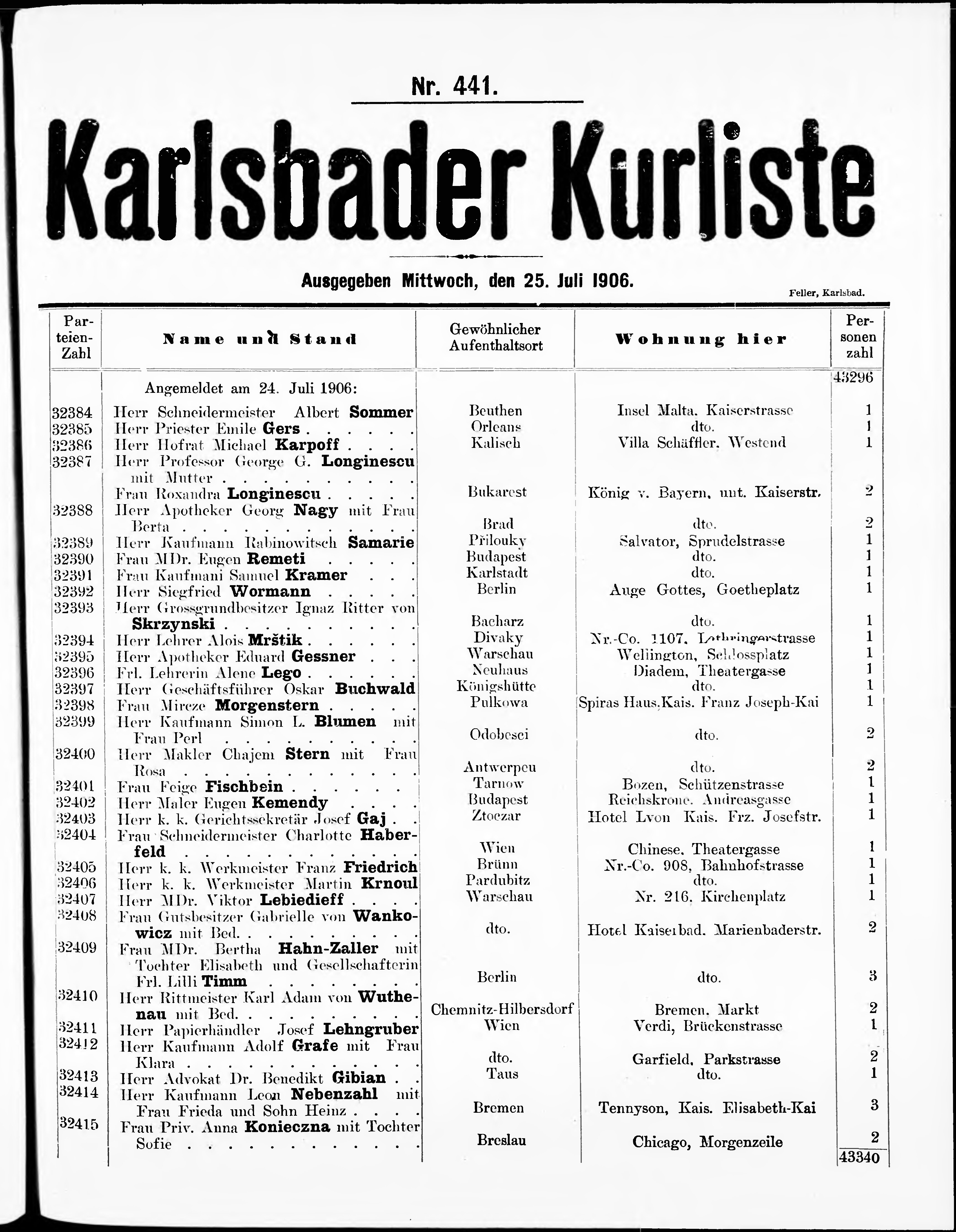 Liste der im Jahre ... angekommenen und abgereisten Kur- und Badegäste in Karlsb...