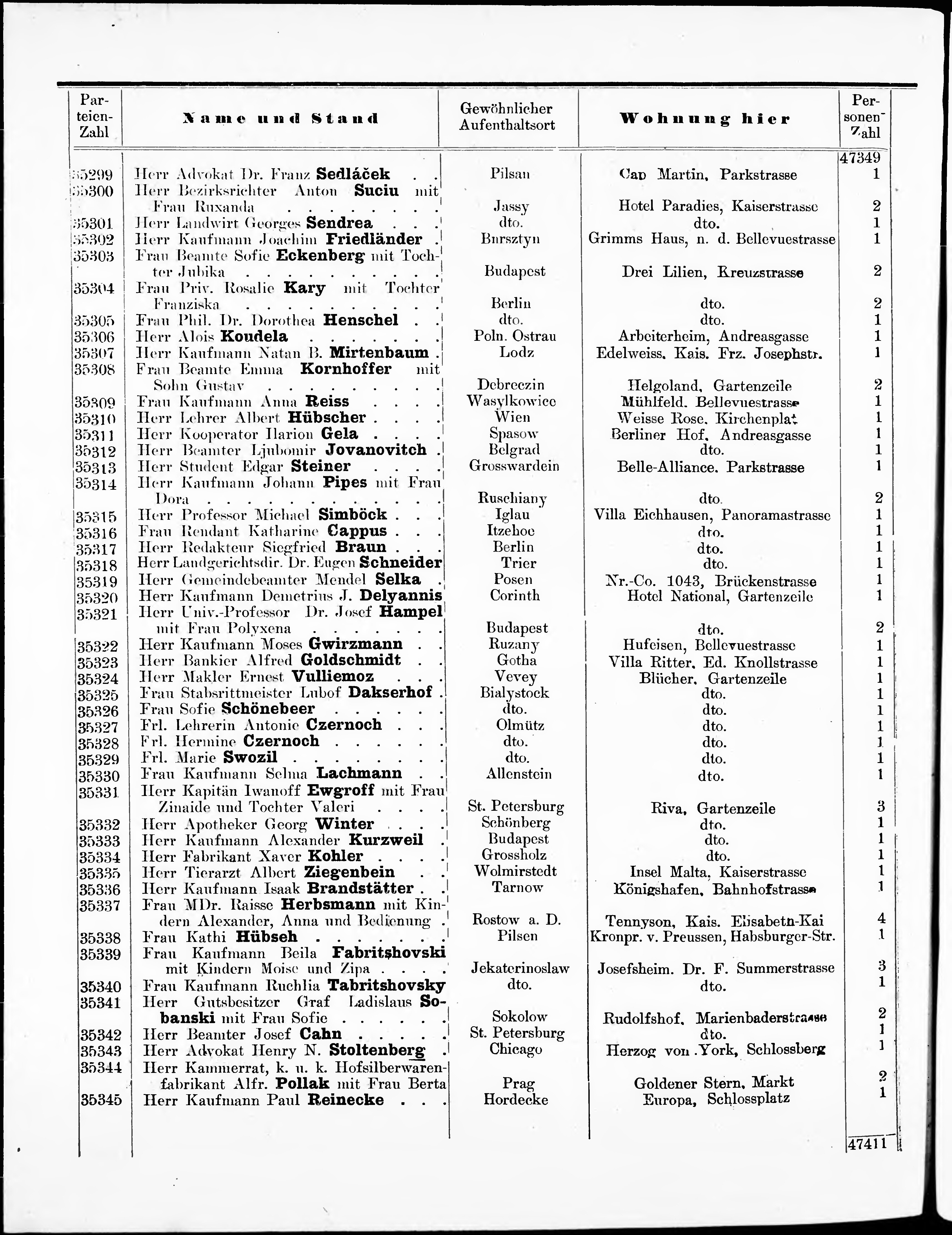 Liste der angekommenen und abgereisten P. T. Curgäste in Carlsbad im Jahre