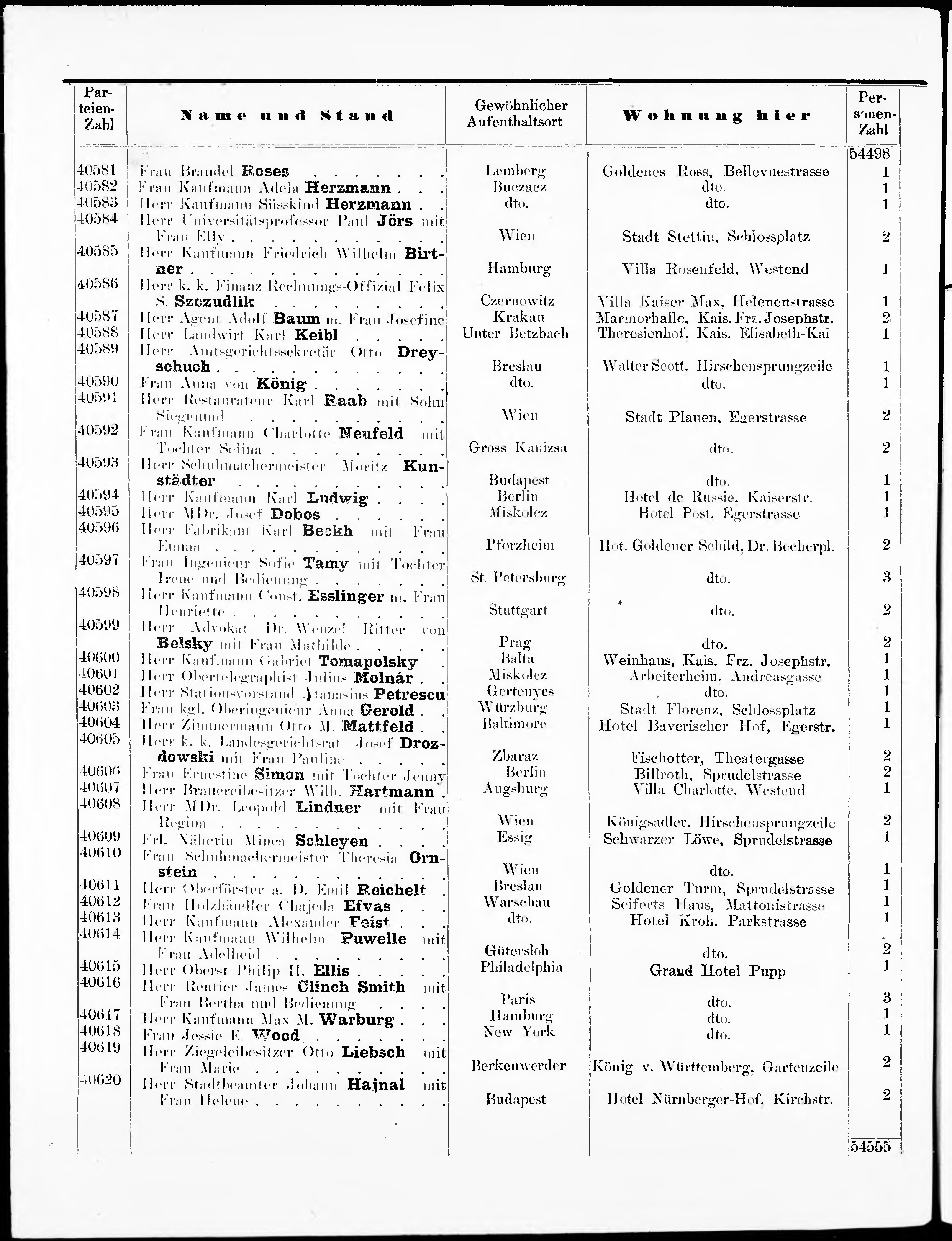 Liste der P.T. Curgäste in Carlsbad ...