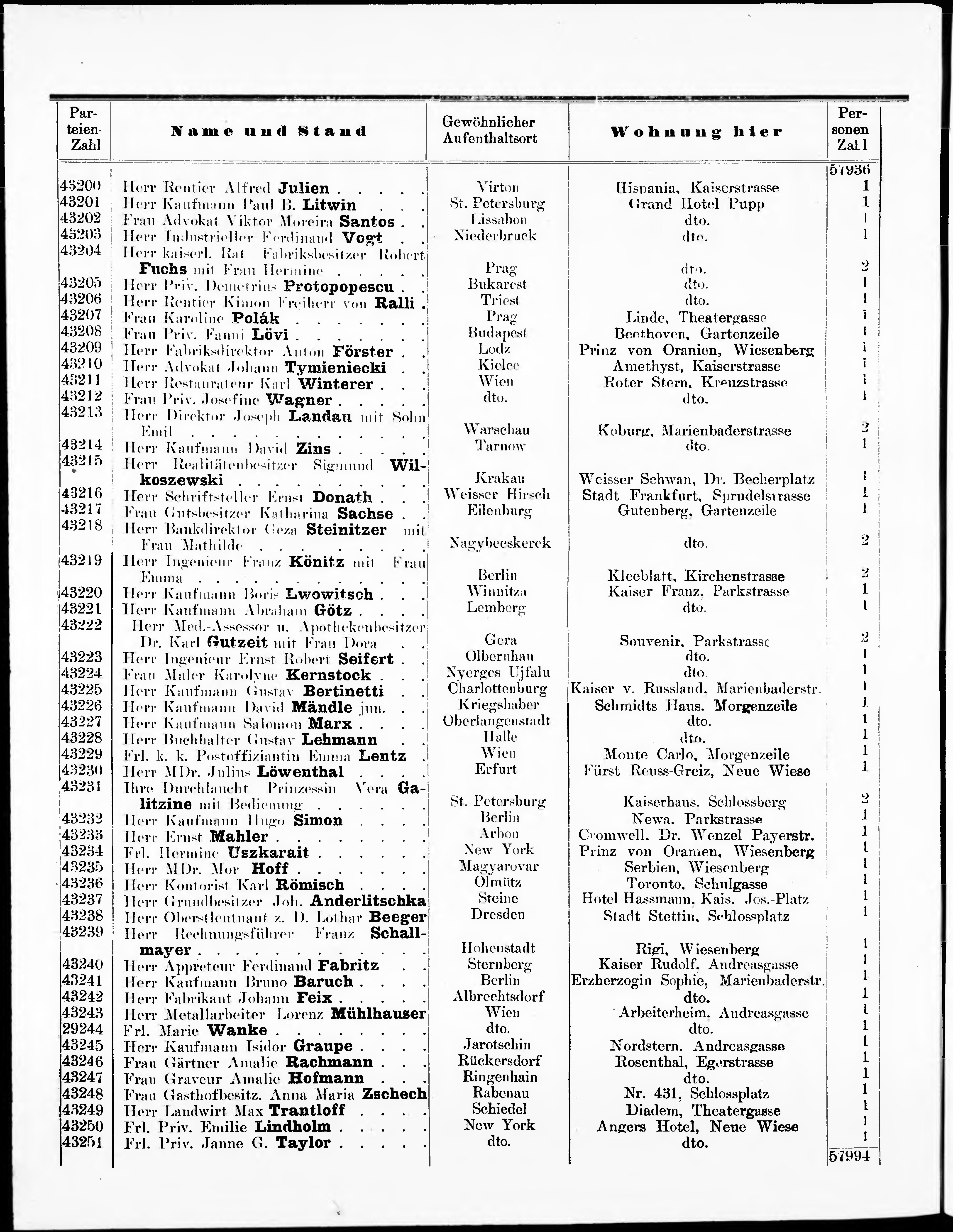 Liste der im Jahre ... angekommenen und abgereisten Kur- und Badegäste in Karlsb...