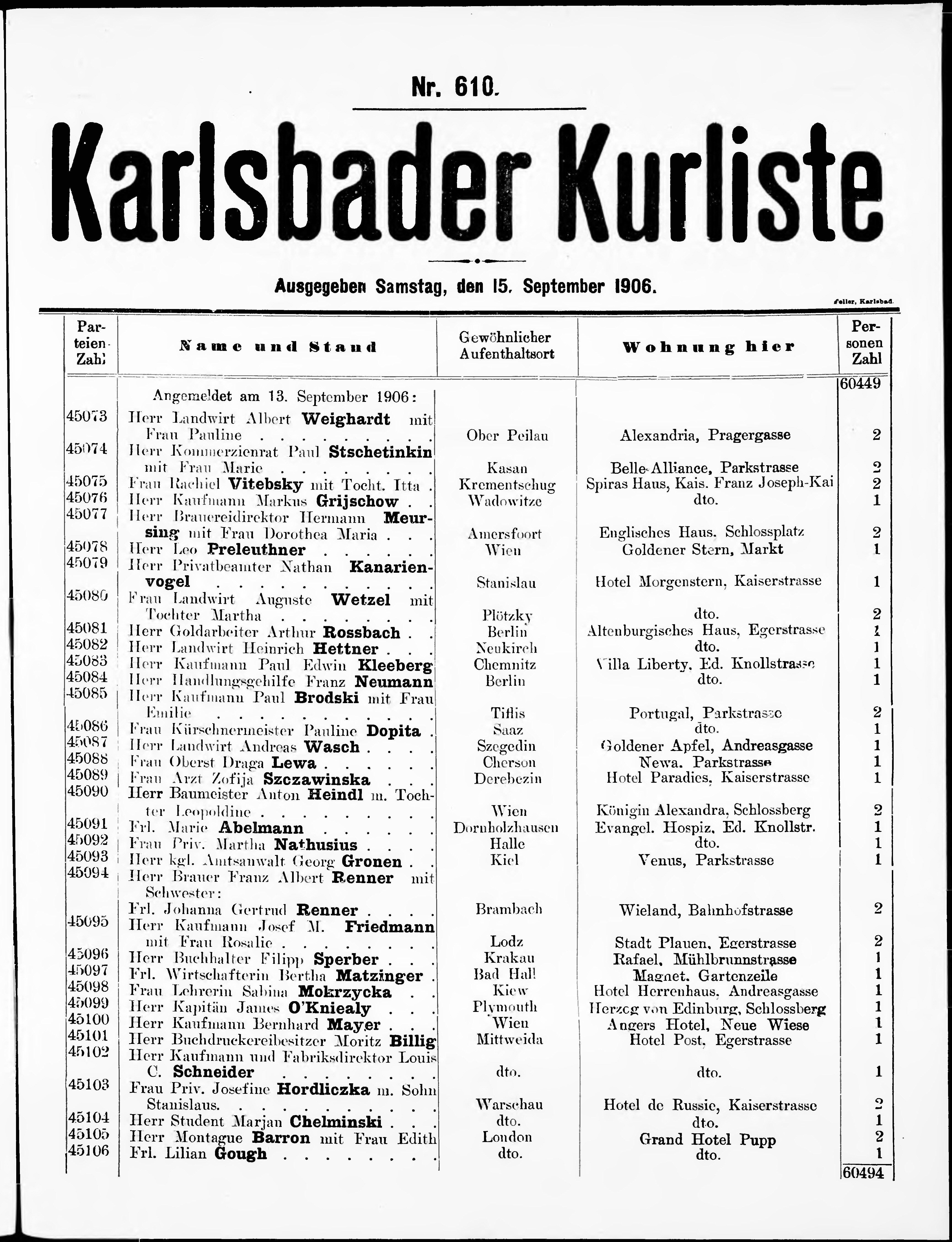 Liste der im Jahre ... angekommenen und abgereisten Kur- und Badegäste in Karlsb...