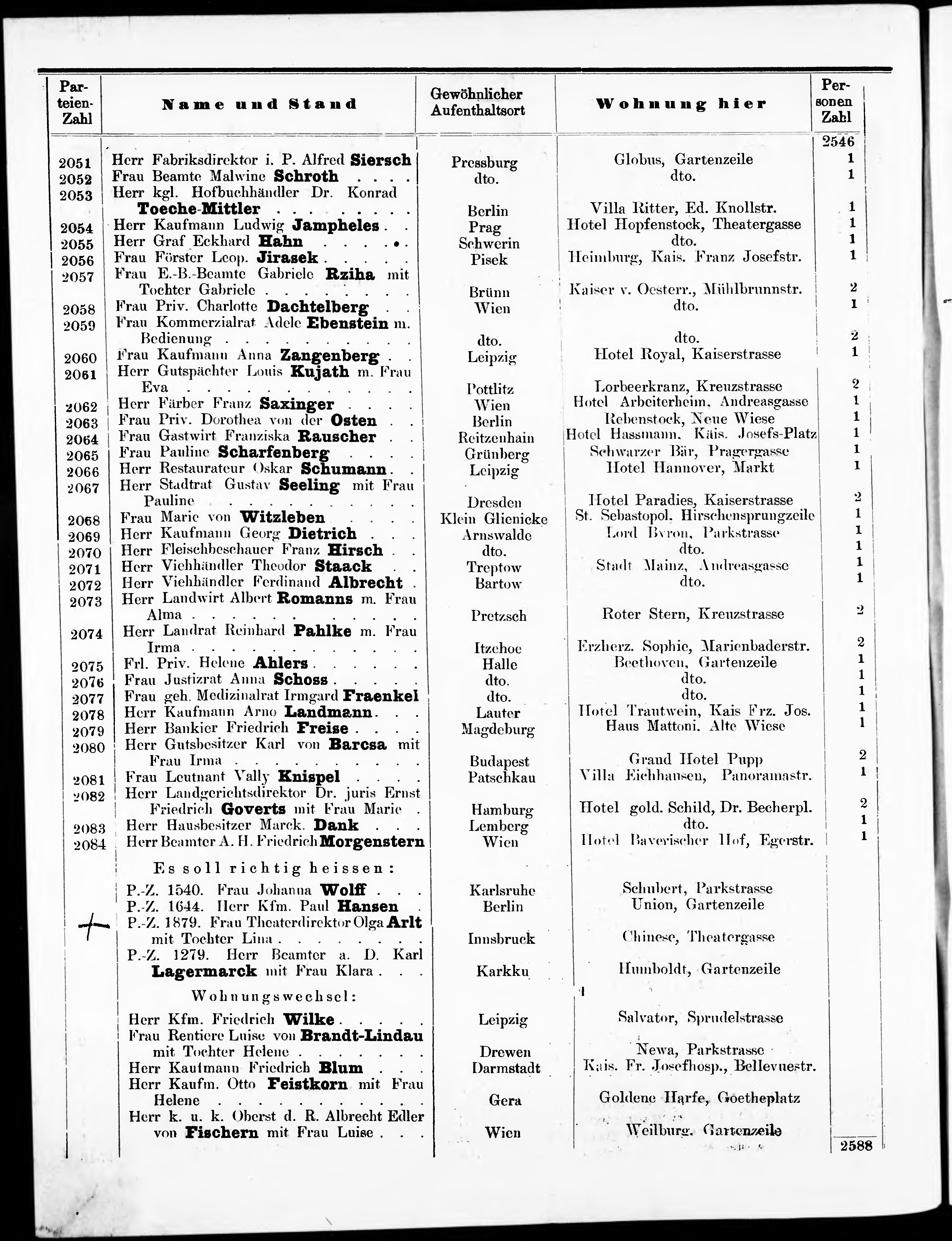 Liste der im Jahre ... angekommenen P.T. Kurgäste in der königl. Stadt Kaiser-Ca...