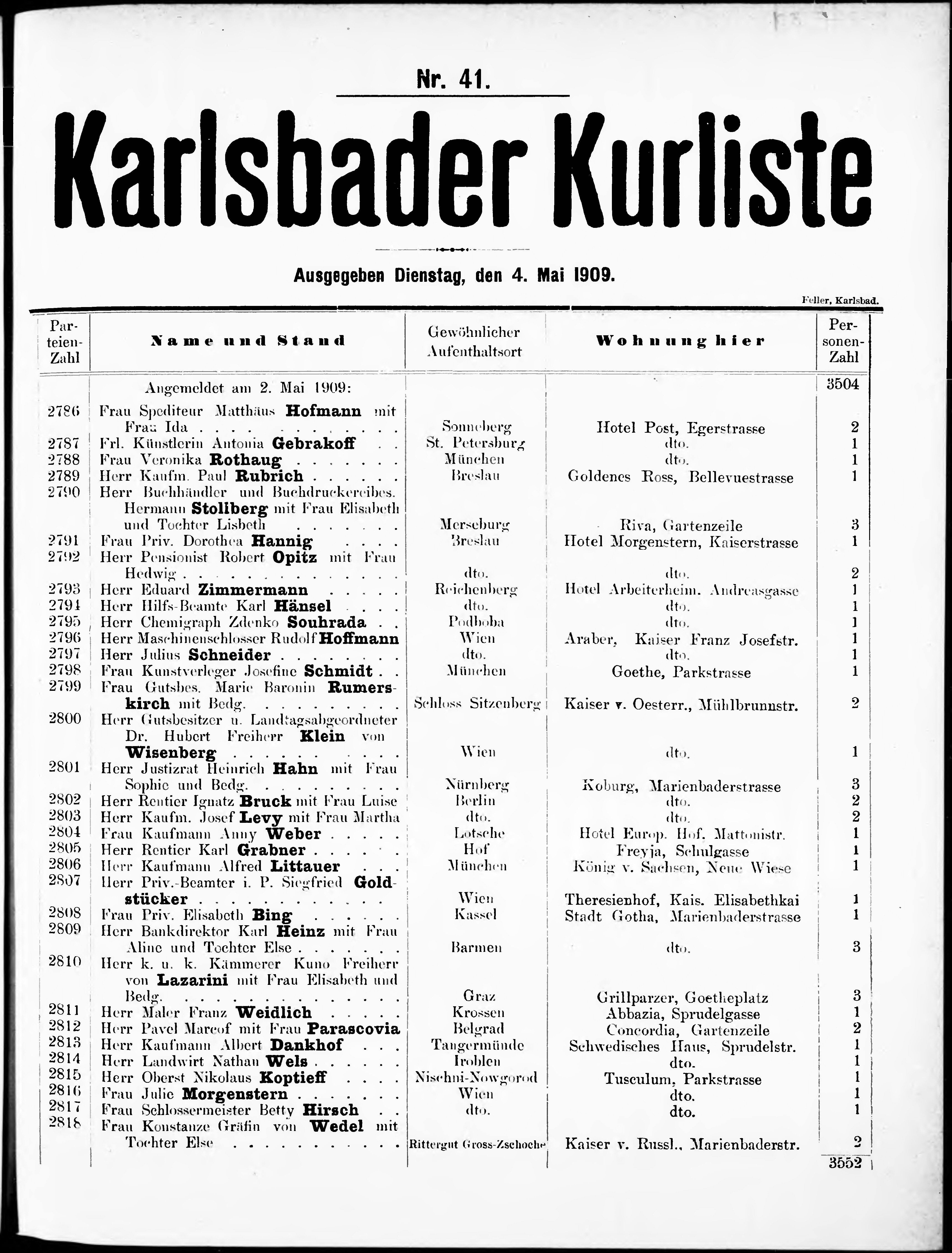 Liste der im Jahre ... angekommenen und abgereisten Kur- und Badegäste in Karlsb...
