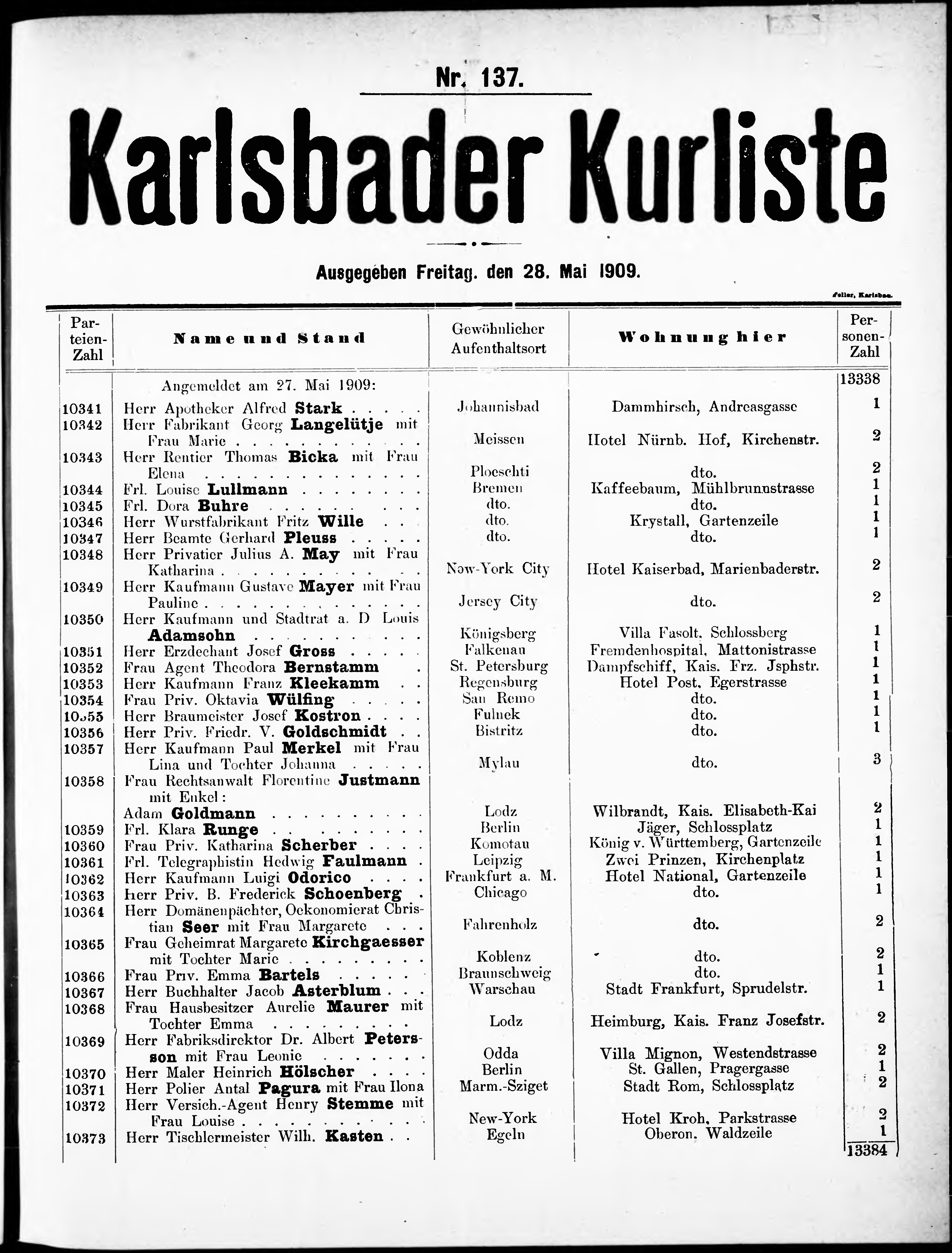 Liste der im Jahre ... angekommenen und abgereisten Kur- und Badegäste in Karlsb...