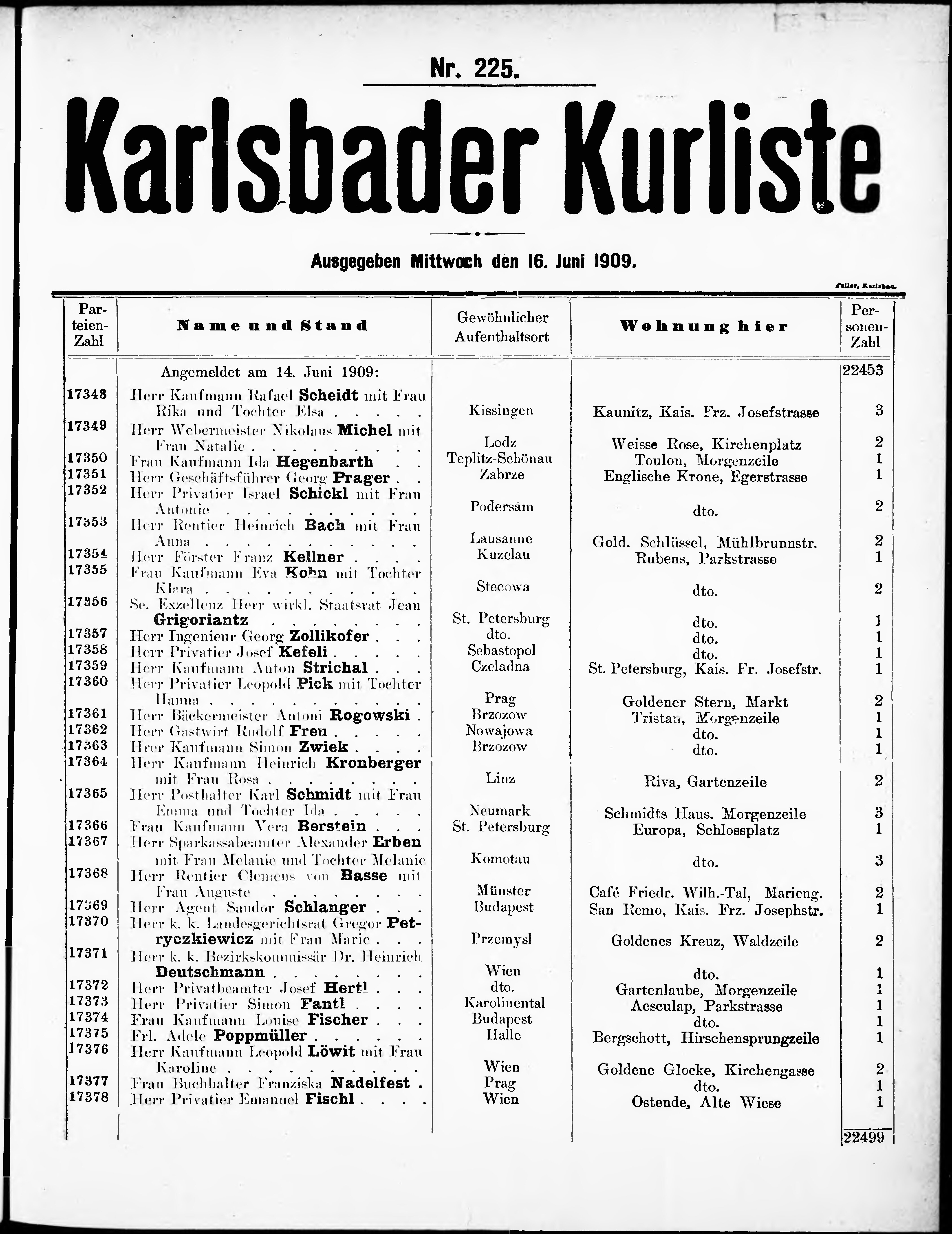 Liste der im Jahre ... angekommenen und abgereisten Kur- und Badegäste in Karlsb...
