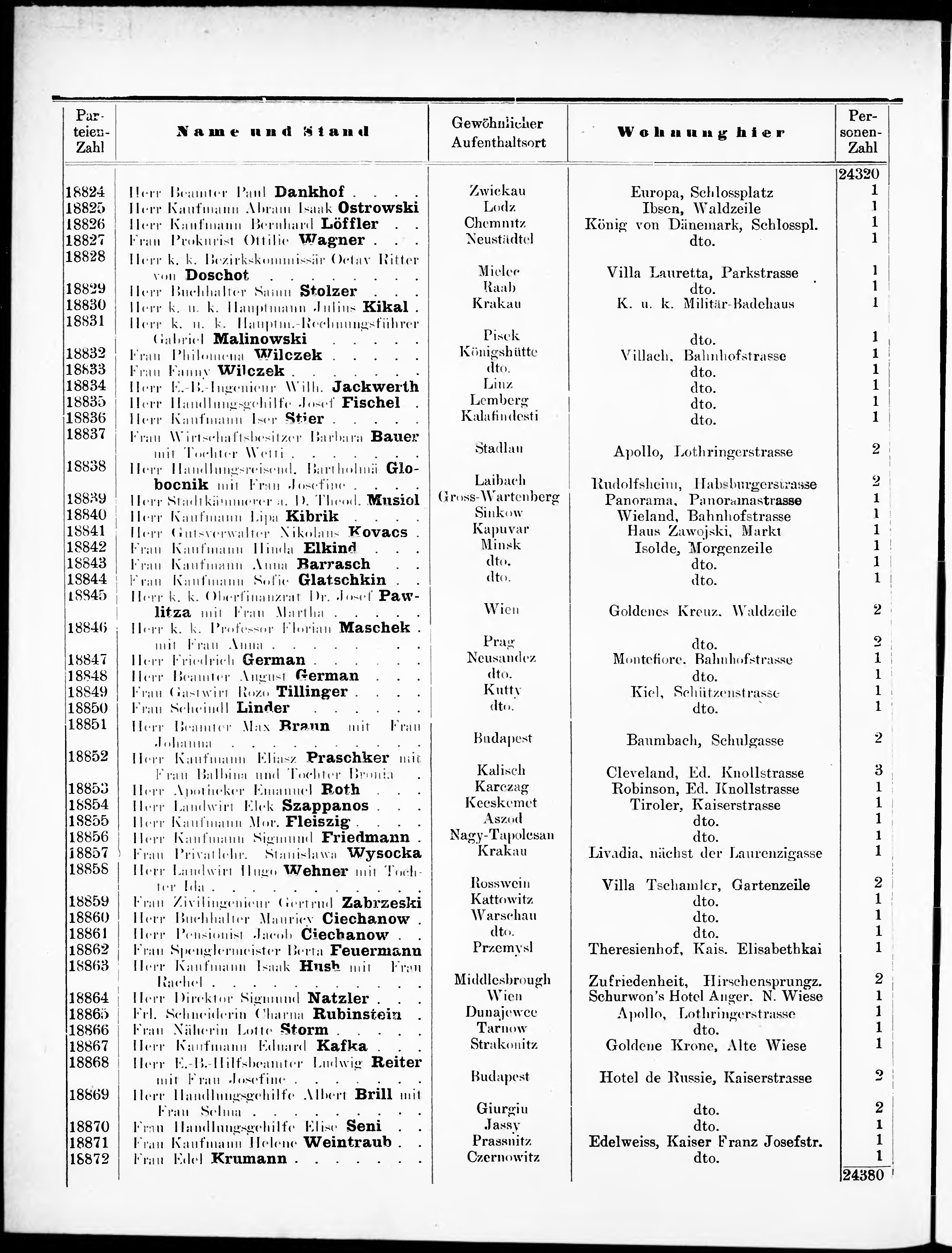 Liste der im Jahre ... angekommenen und abgereisten Kur- und Badegäste in Karlsb...