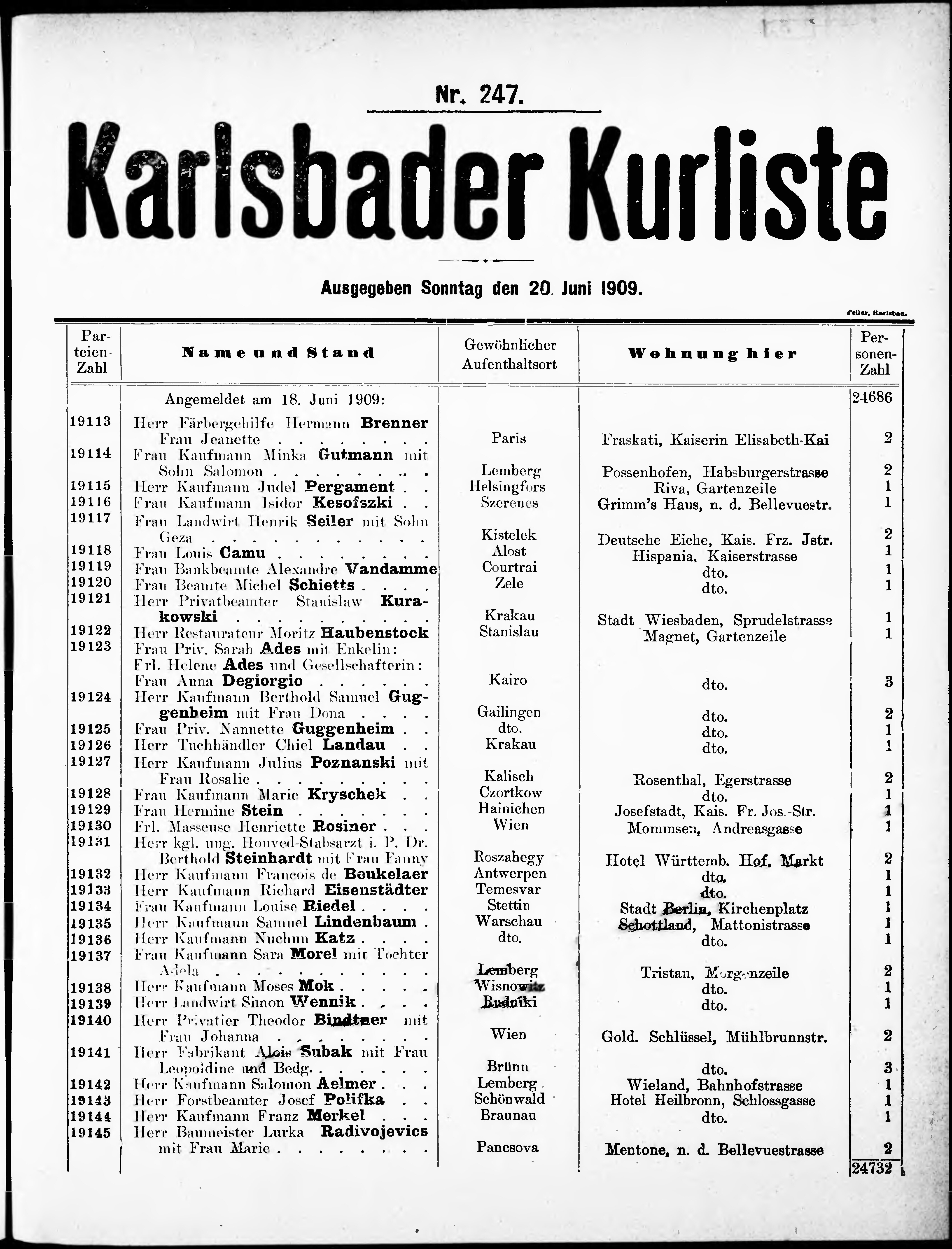 Liste der im Jahre ... angekommenen und abgereisten Kur- und Badegäste in Karlsb...