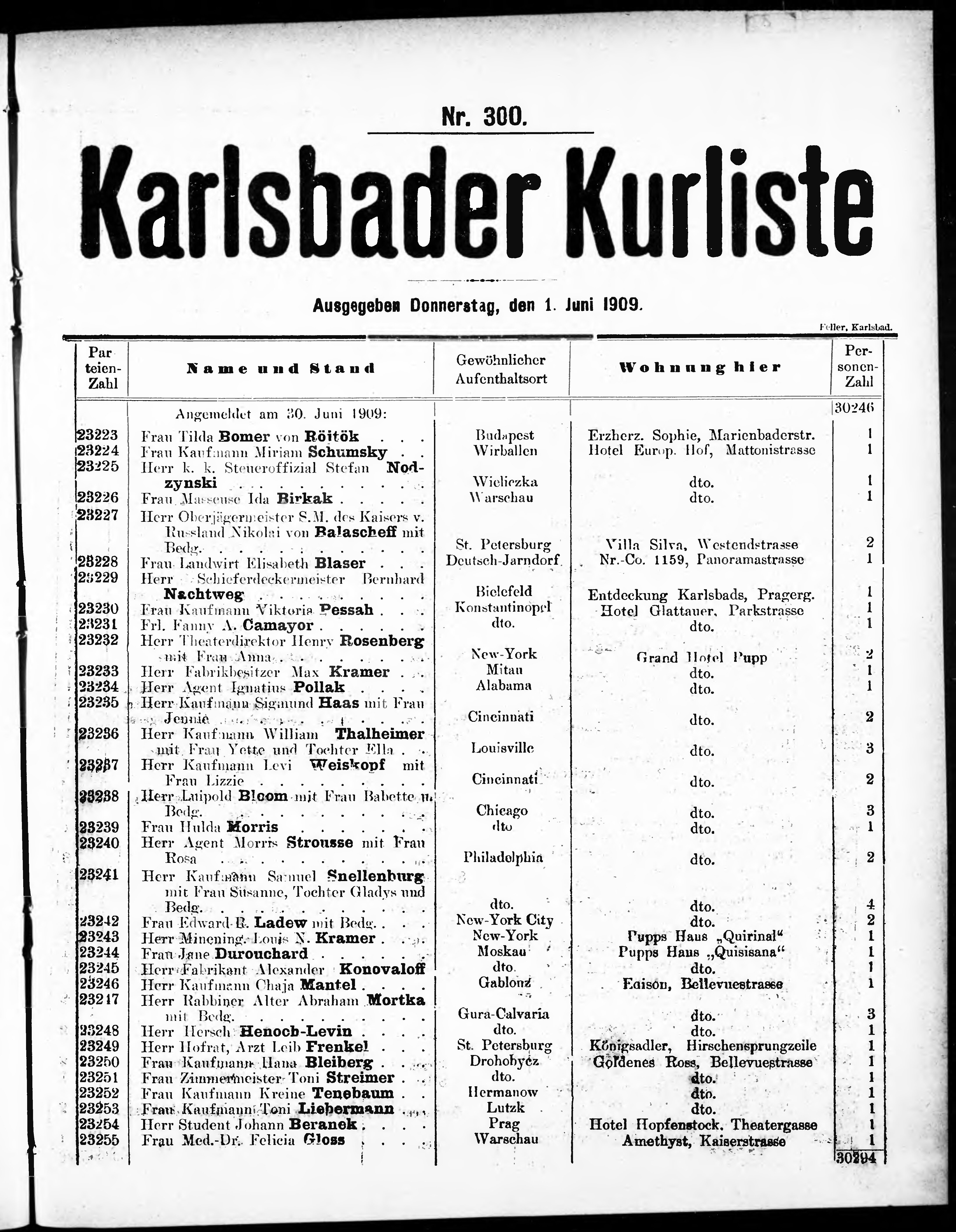 Liste der im Jahre ... angekommenen und abgereisten Kur- und Badegäste in Karlsb...