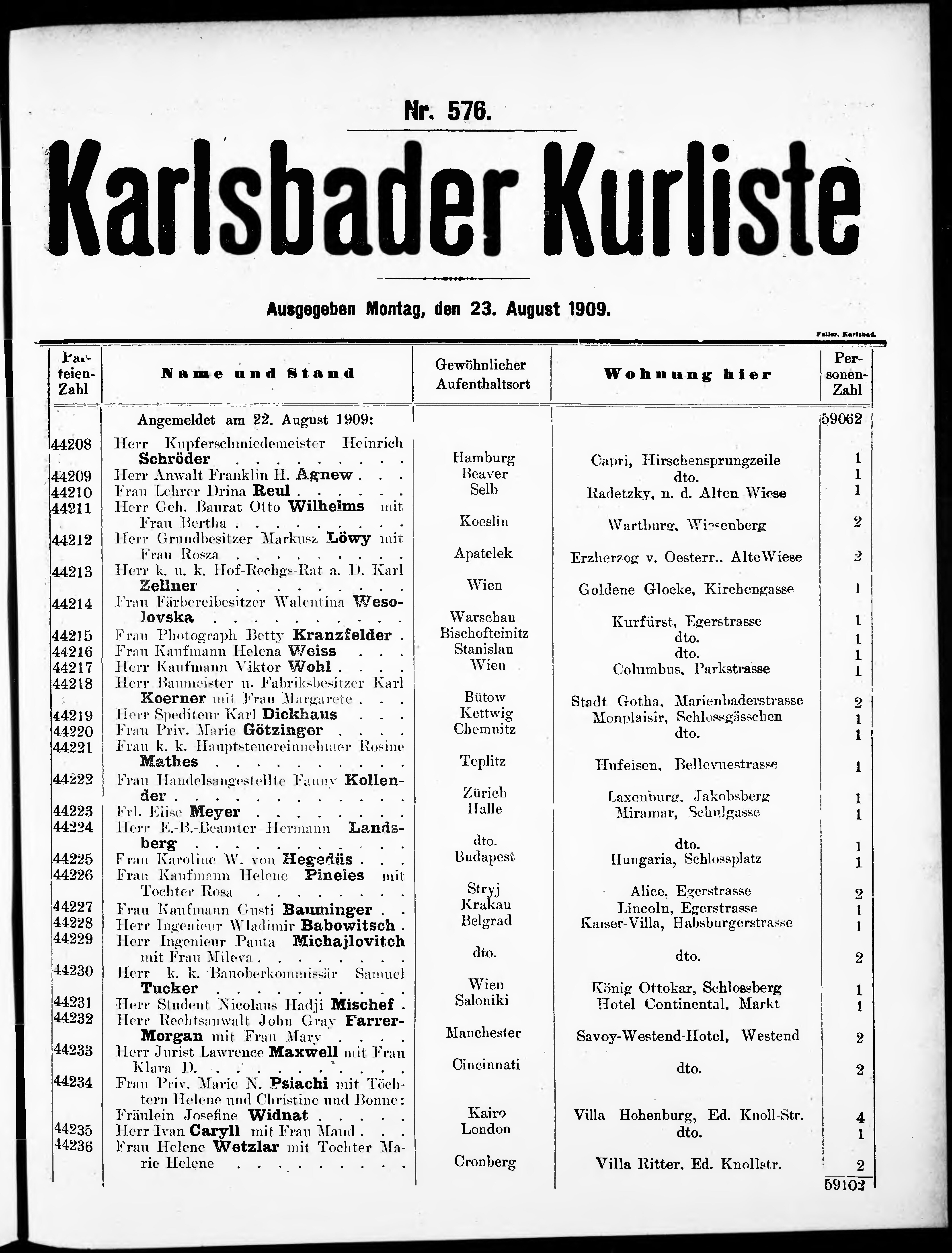Liste der im Jahre ... angekommenen und abgereisten Kur- und Badegäste in Karlsb...