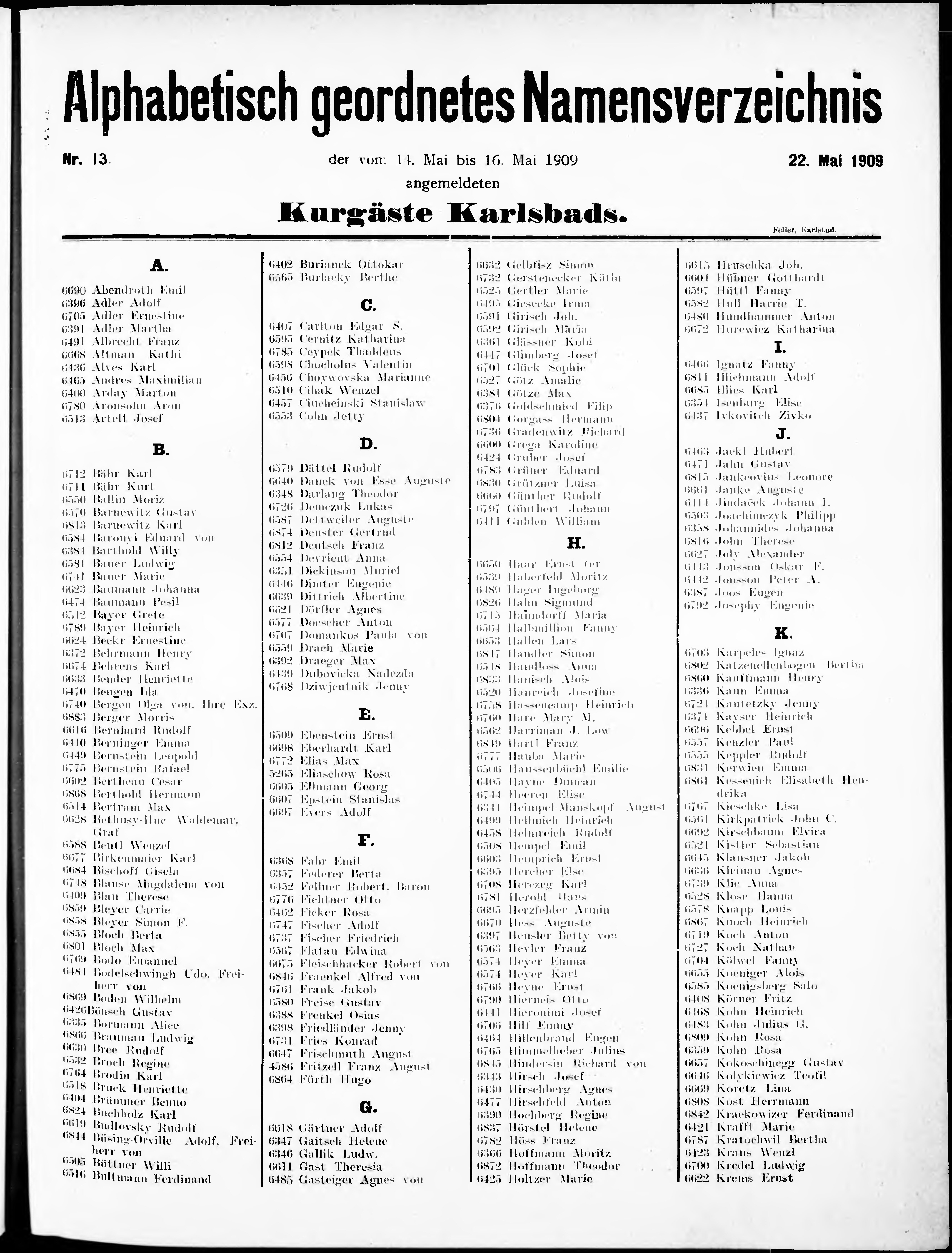 Liste der im Jahre ... angekommenen und abgereisten Kur- und Badegäste in Karlsb...