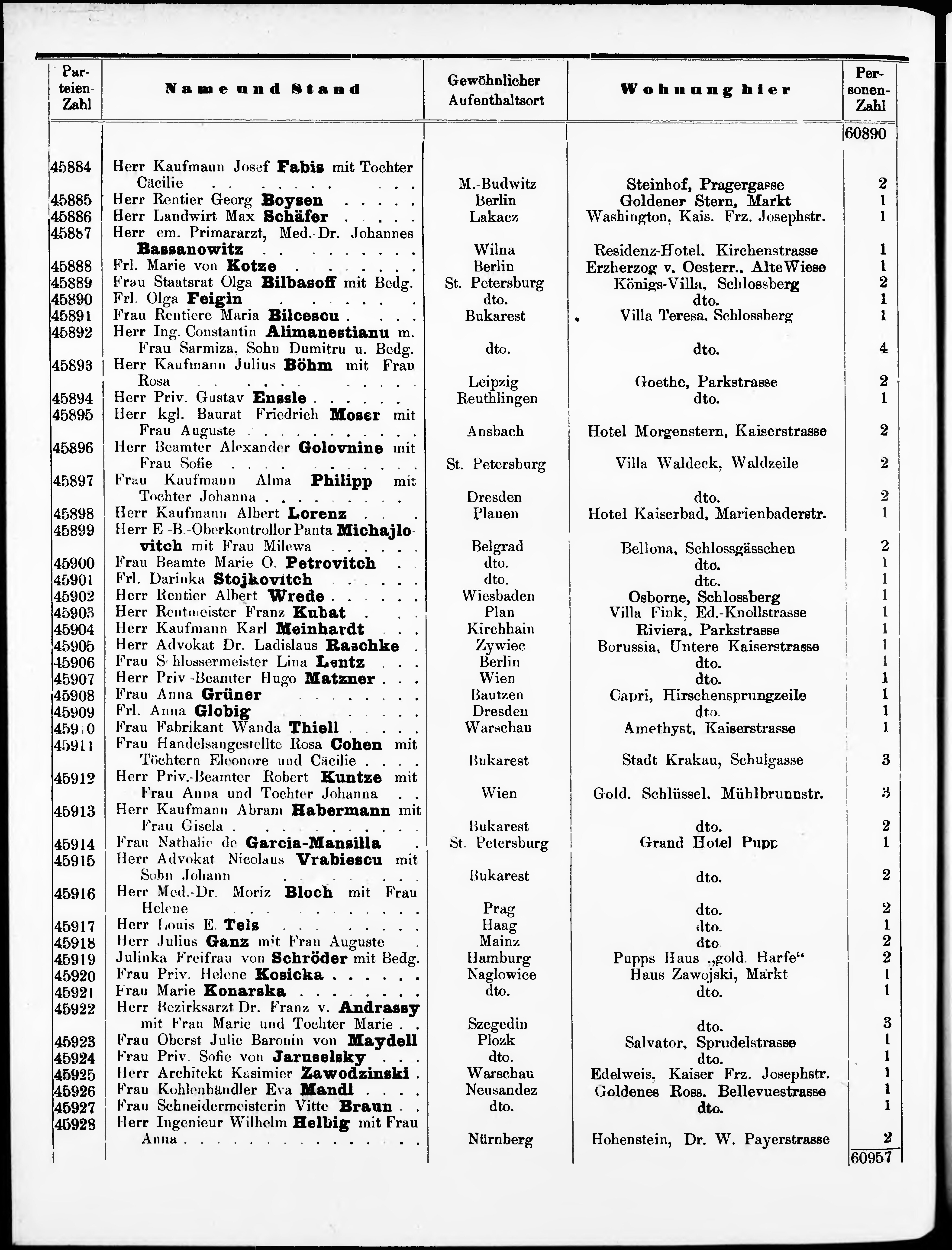 Liste der P.T. Curgäste in Carlsbad ...