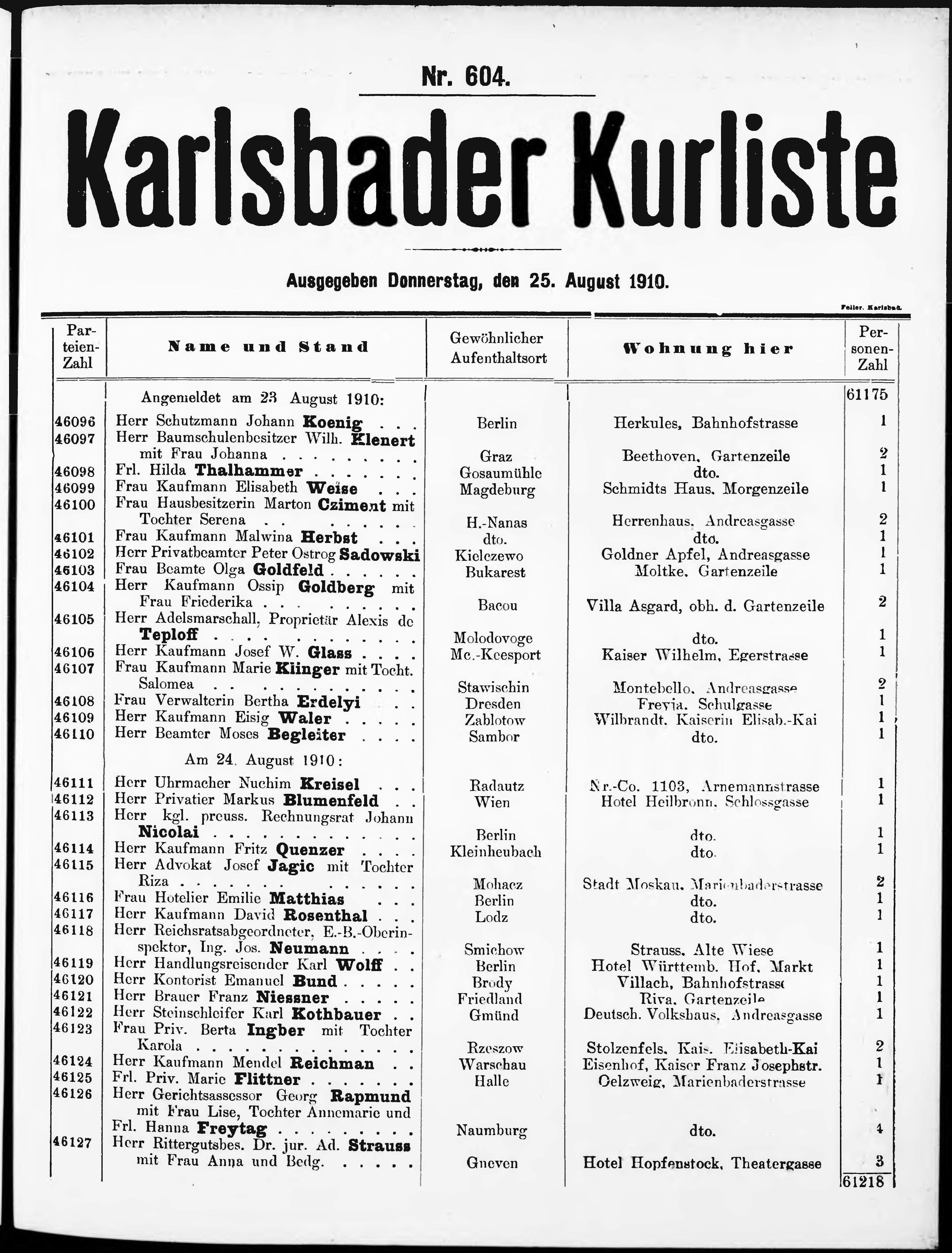 Liste der im Jahre ... angekommenen und abgereisten Kur- und Badegäste in Karlsb...