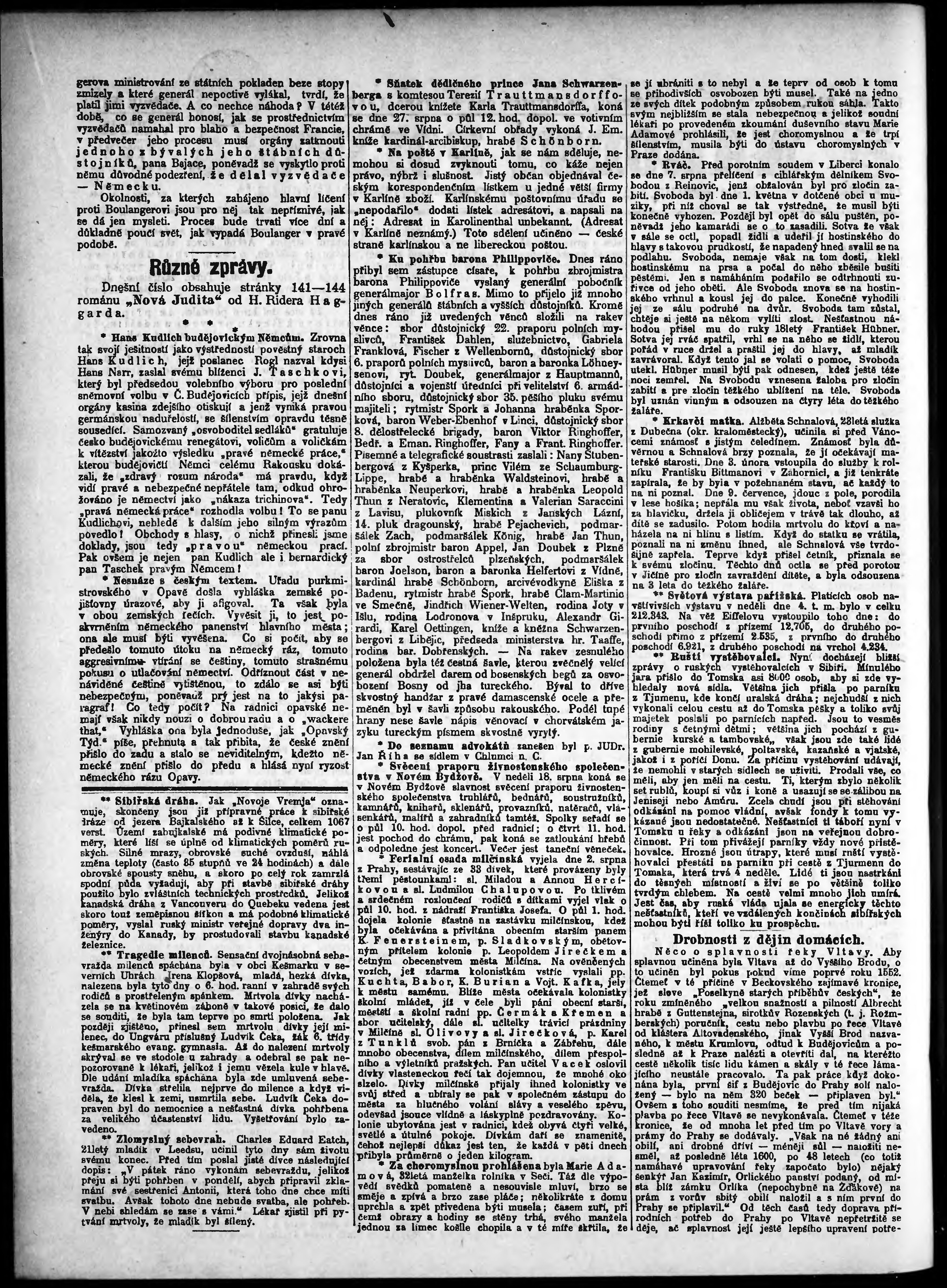 * Datum vydání výtisku: 8.8.1889 Číslo výtisku: 217 Poznámky k výtisku: odpolední vydání;