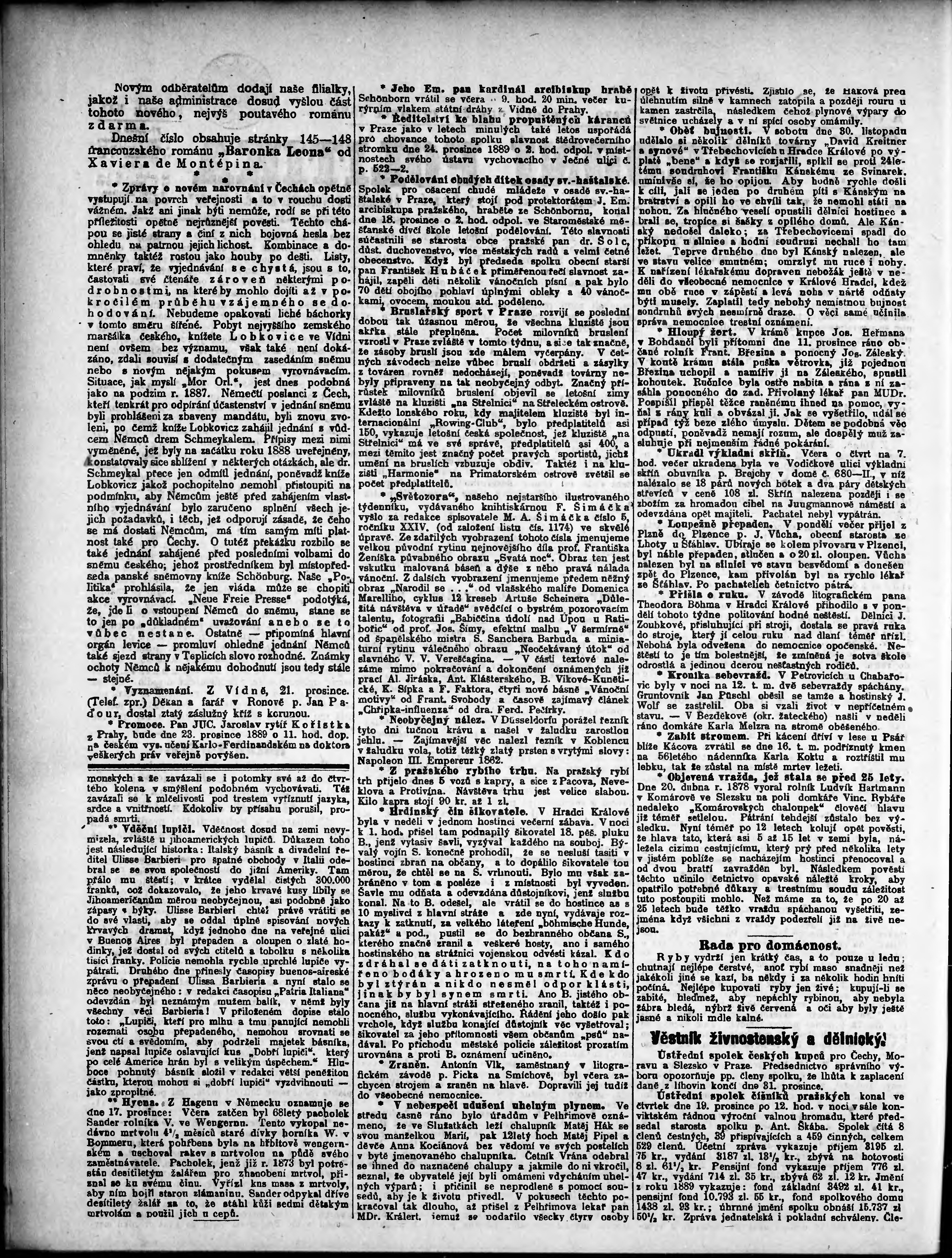 * Datum vydání výtisku: 21.12.1889 Číslo výtisku: 352 Poznámky k výtisku: odpolední vydání;