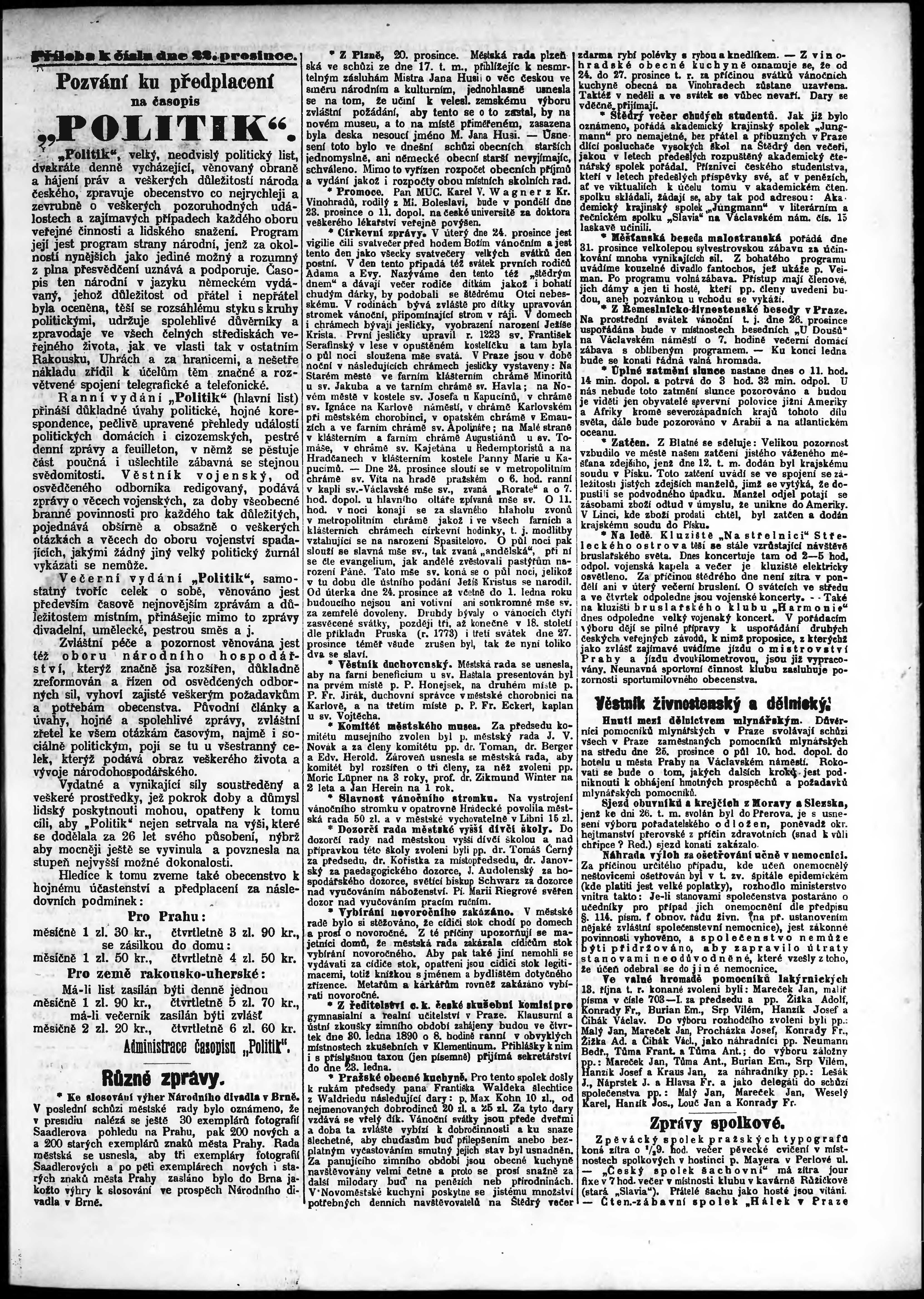 * Datum vydání výtisku: 22.12.1889 Číslo výtisku: 353 Typ výtisku: příloha