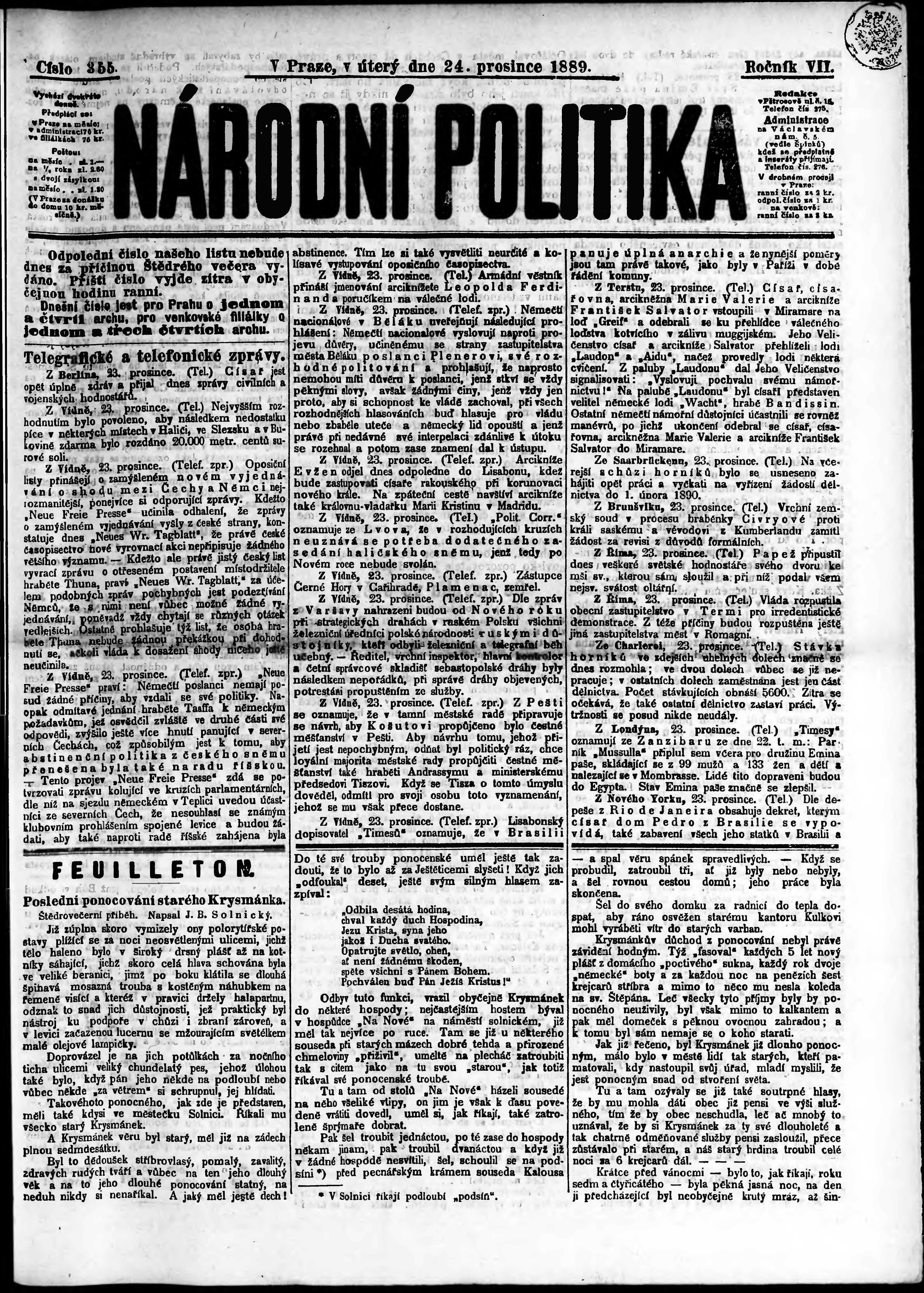 * Datum vydání výtisku: 24.12.1889 Číslo výtisku: 355