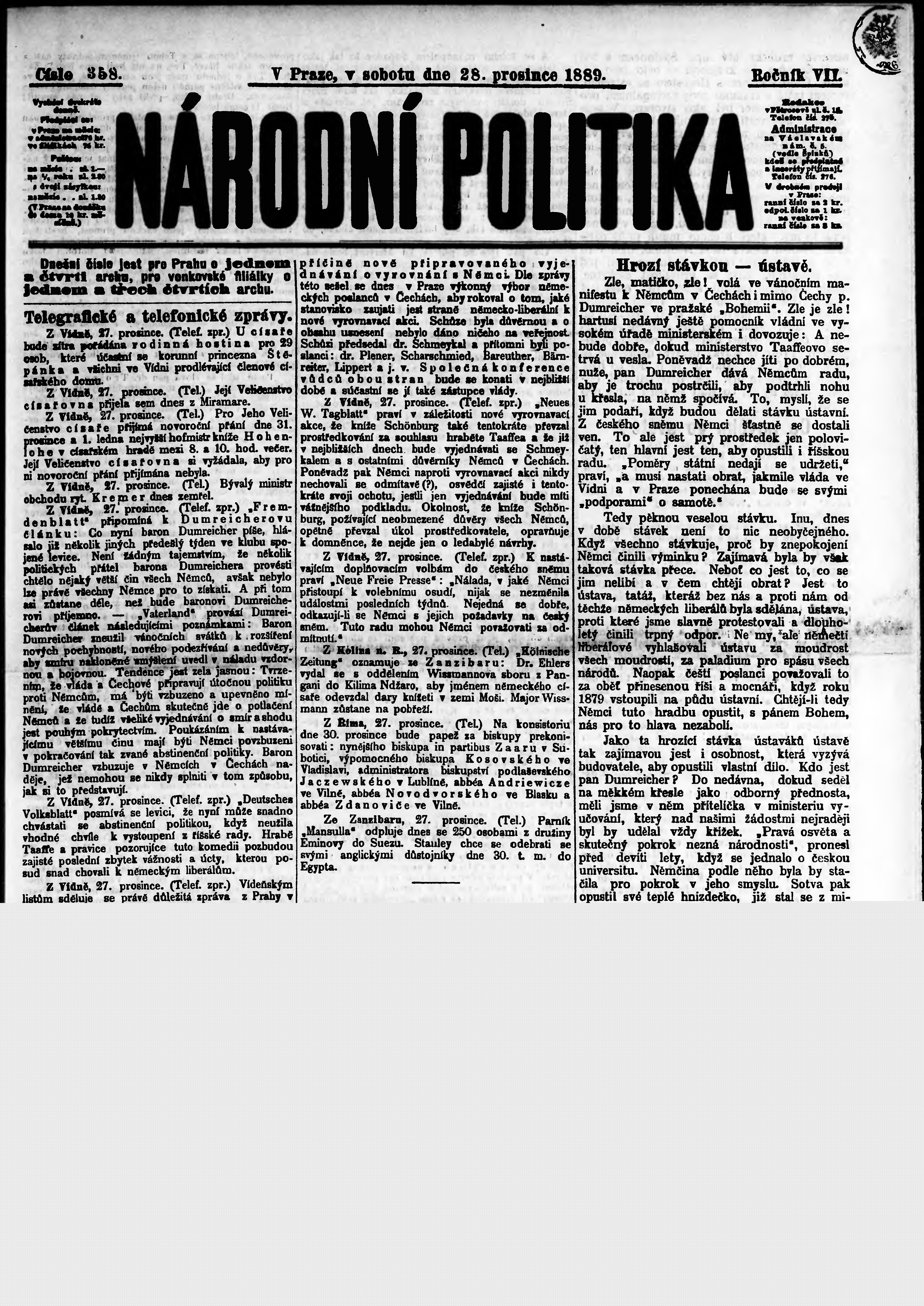 * Datum vydání výtisku: 28.12.1889 Číslo výtisku: 358