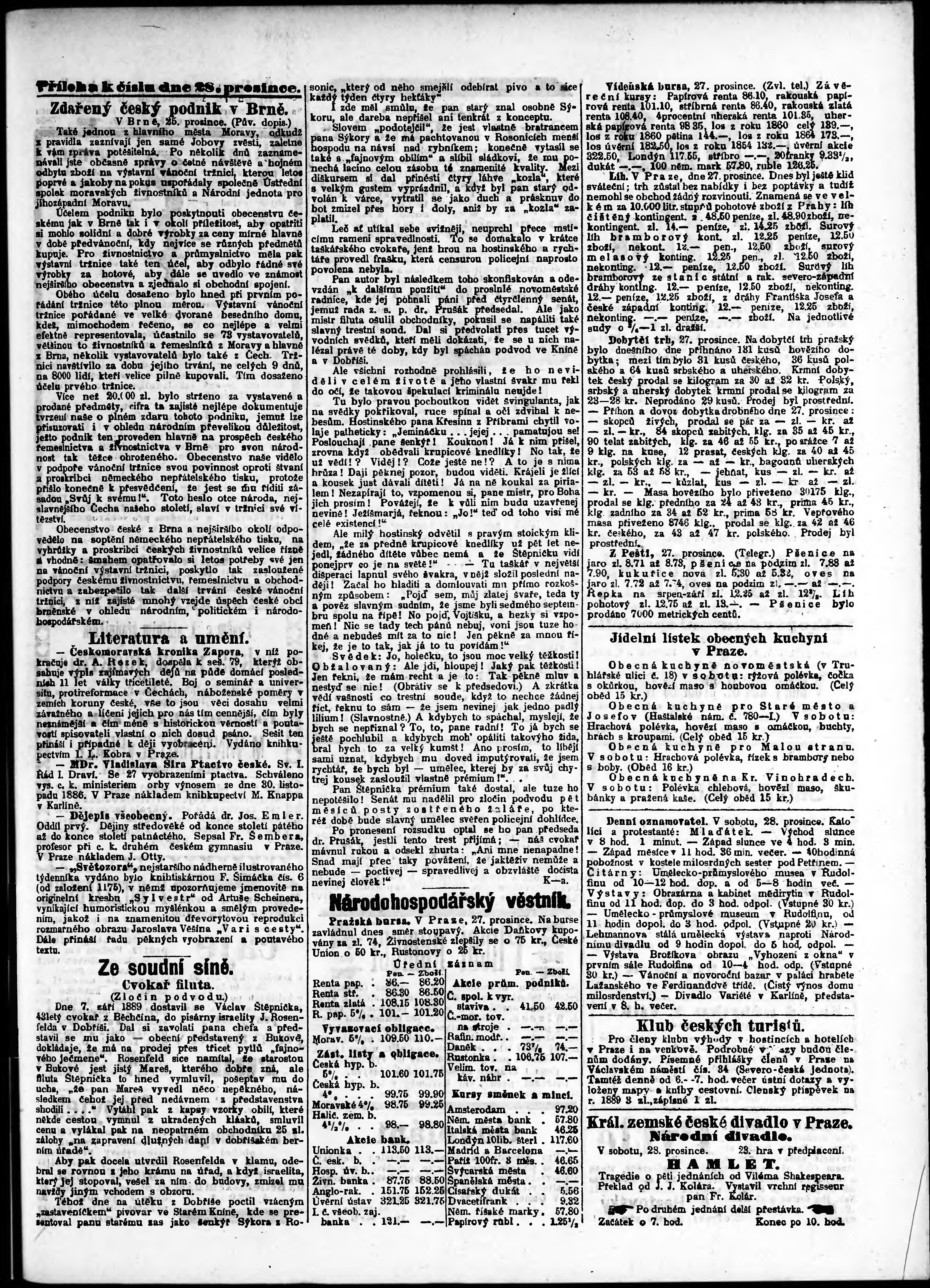 * Datum vydání výtisku: 28.12.1889 Číslo výtisku: 358 Typ výtisku: příloha