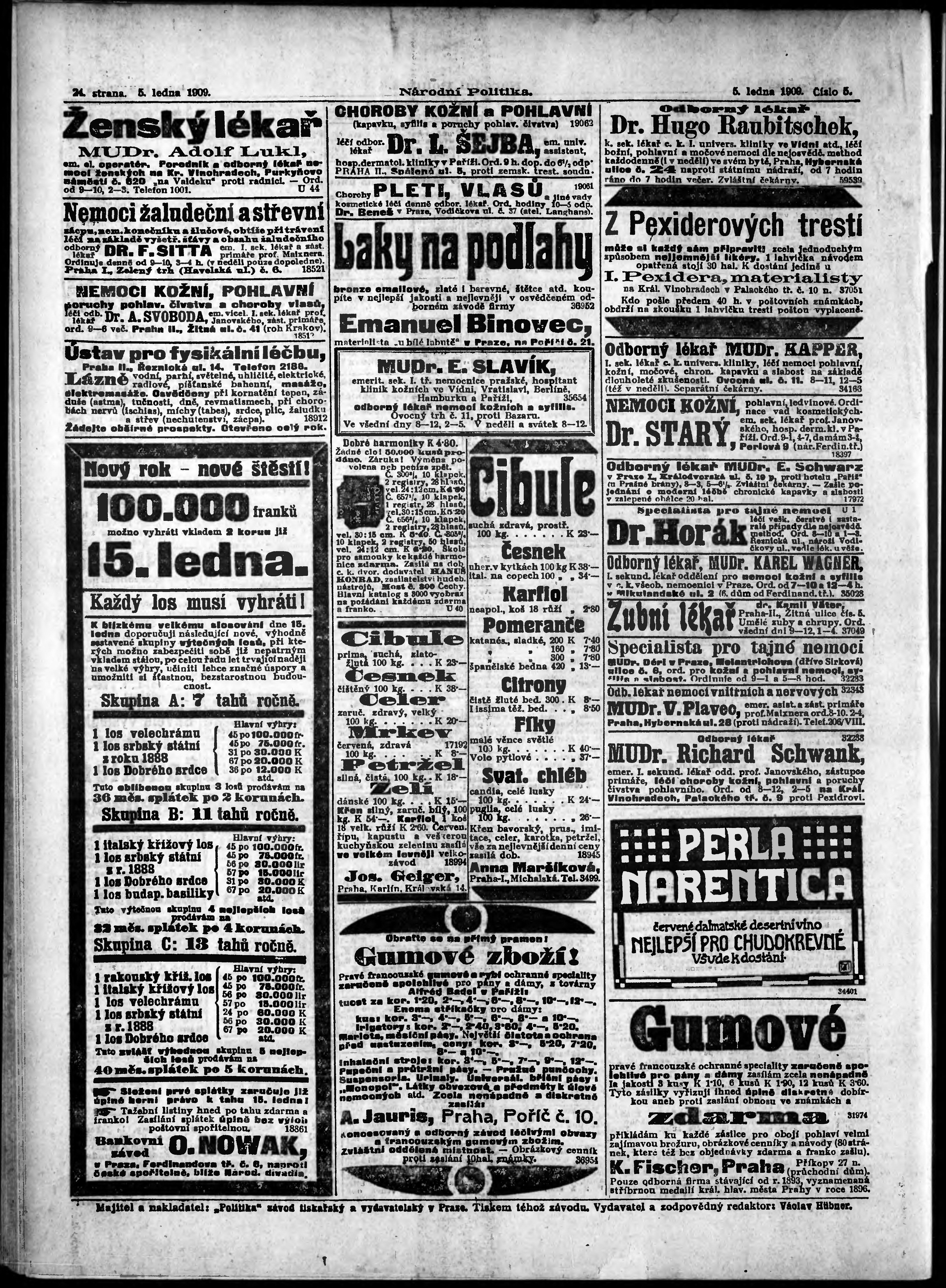 * Datum vydání výtisku: 5.1.1909 Číslo výtisku: 5