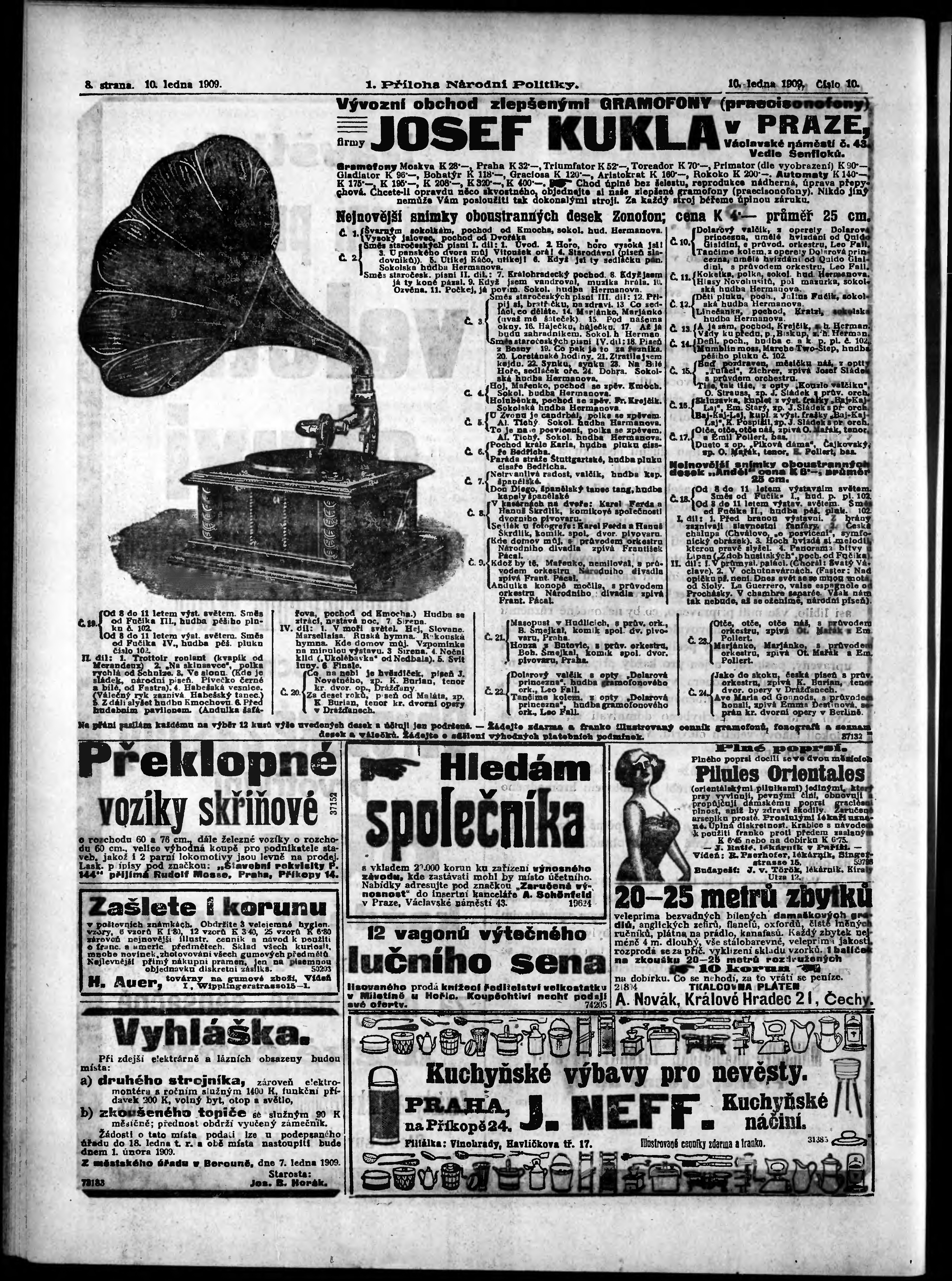 * Datum vydání výtisku: 10.1.1909 Číslo výtisku: 10 Typ výtisku: příloha Poznámky k výtisku: 1. příloha;