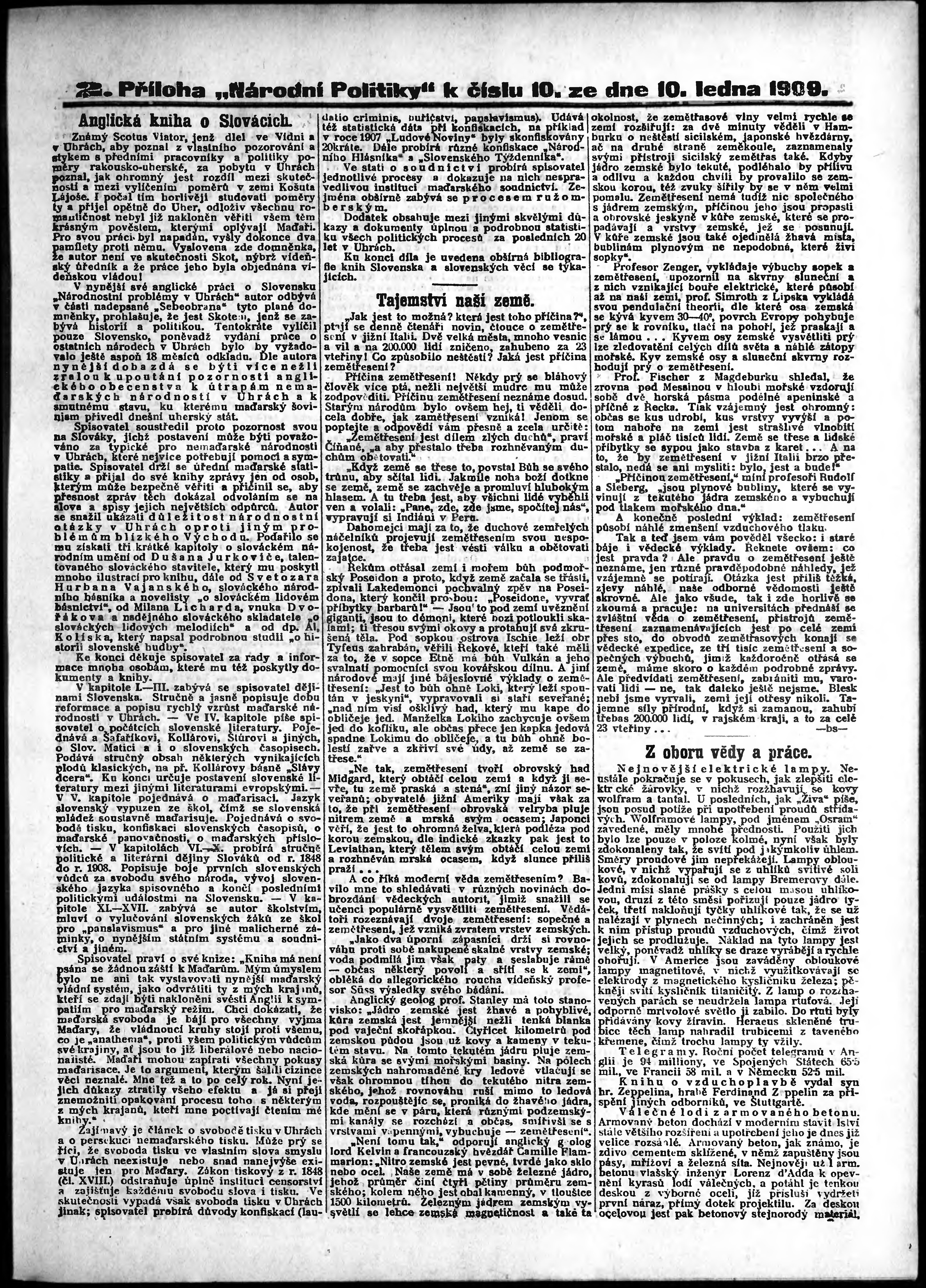 * Datum vydání výtisku: 10.1.1909 Číslo výtisku: 10 Typ výtisku: příloha Poznámky k výtisku: 2. příloha;