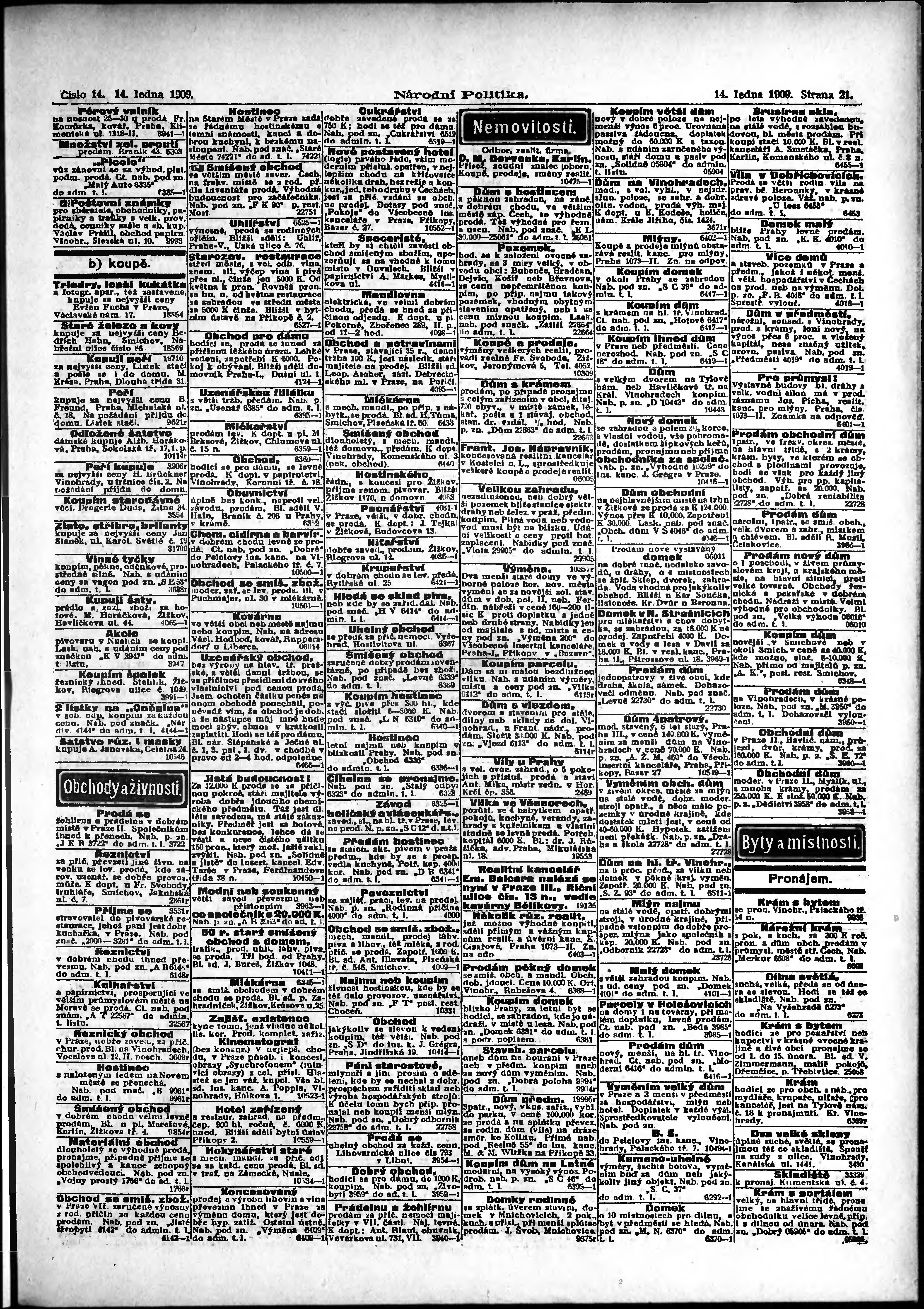 * Datum vydání výtisku: 14.1.1909 Číslo výtisku: 14