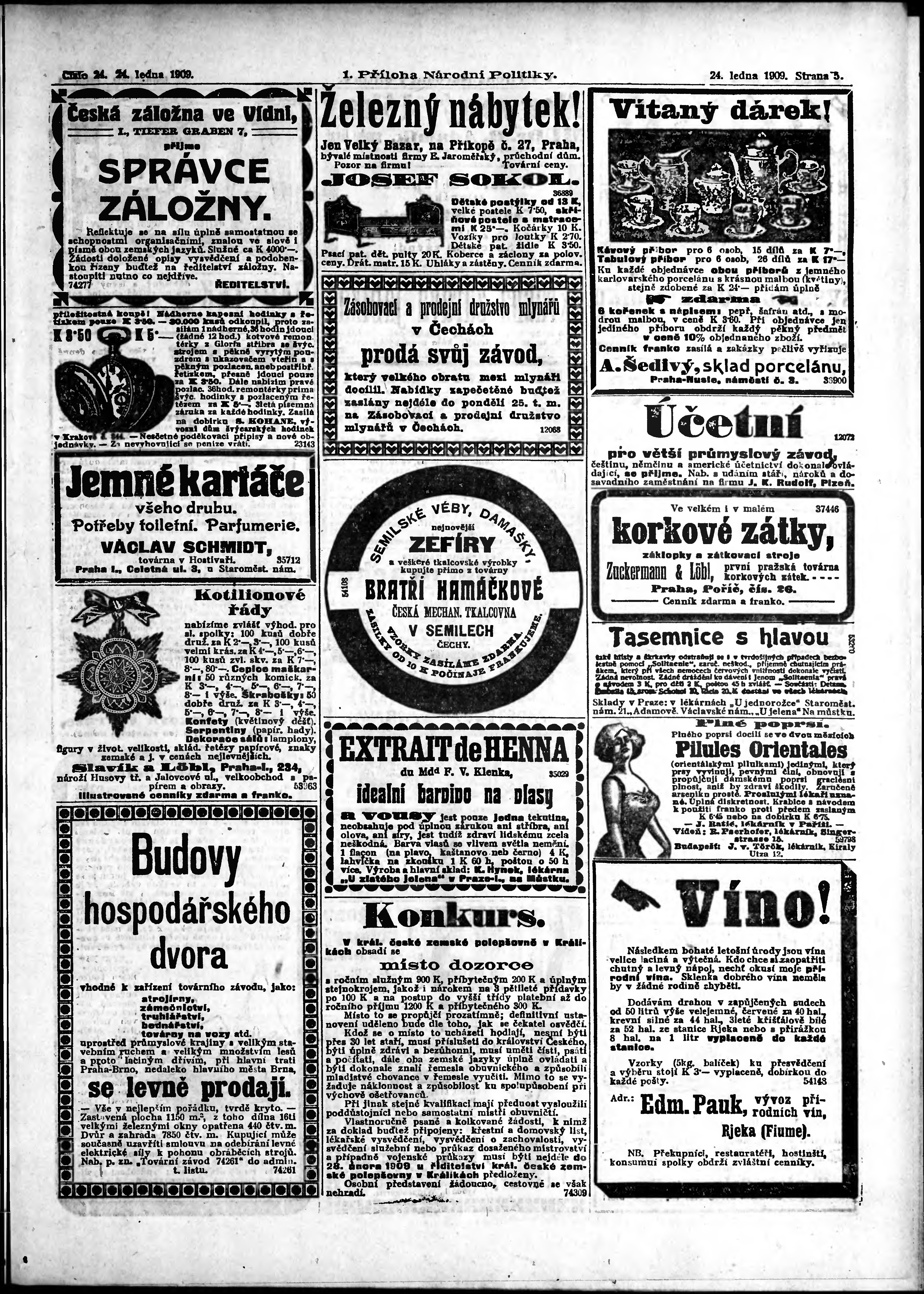 * Datum vydání výtisku: 24.1.1909 Číslo výtisku: 24 Typ výtisku: příloha Poznámky k výtisku: 1. příloha;