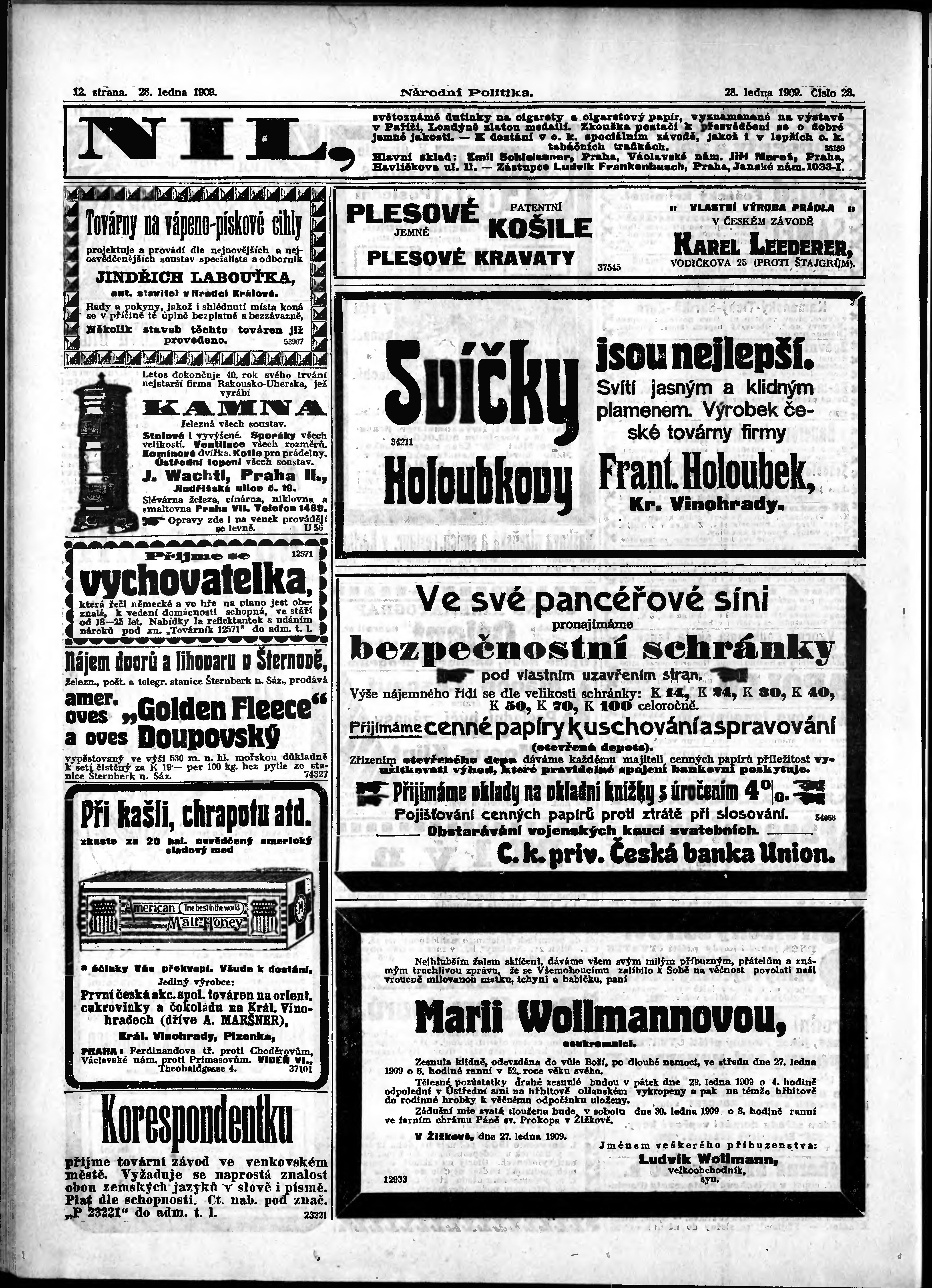 * Datum vydání výtisku: 28.1.1909 Číslo výtisku: 28